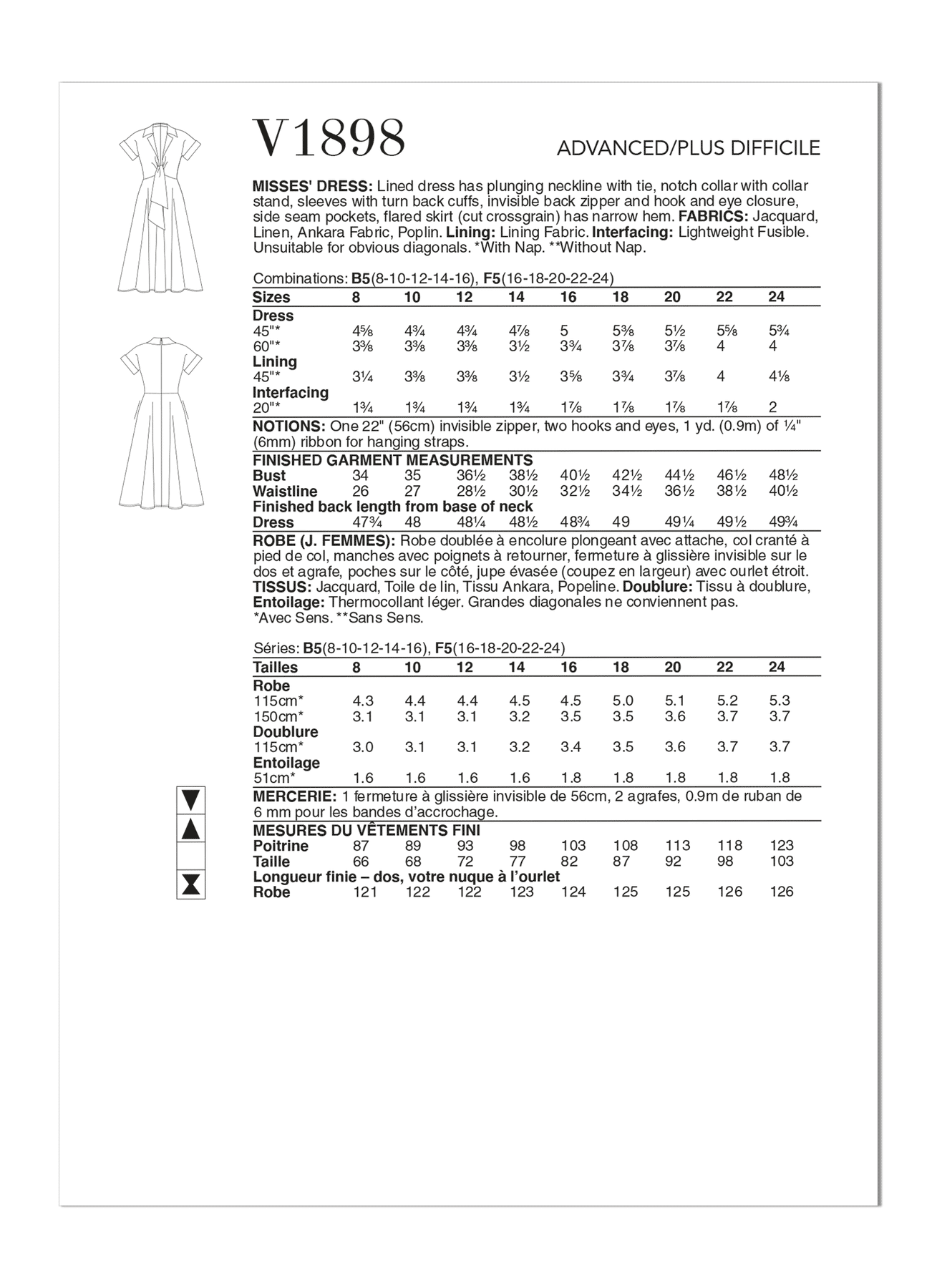 Vogue Schnittmuster V1898 Gefütterte Kleid mit tiefen Ausschnitt von Badgley Mischka