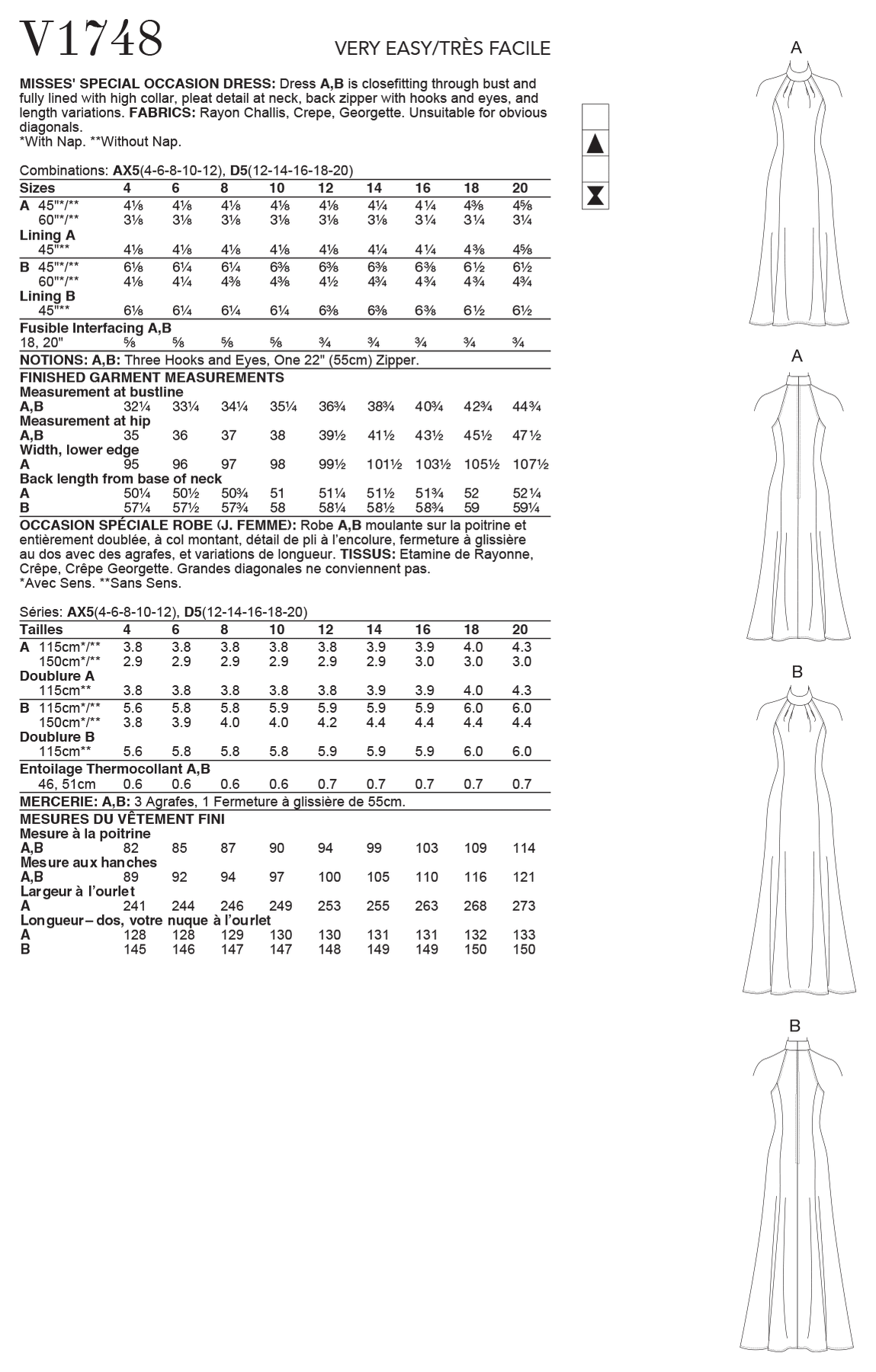 Vogue Schnittmuster V1748 Damen Abendkleid mit hohem Kragen