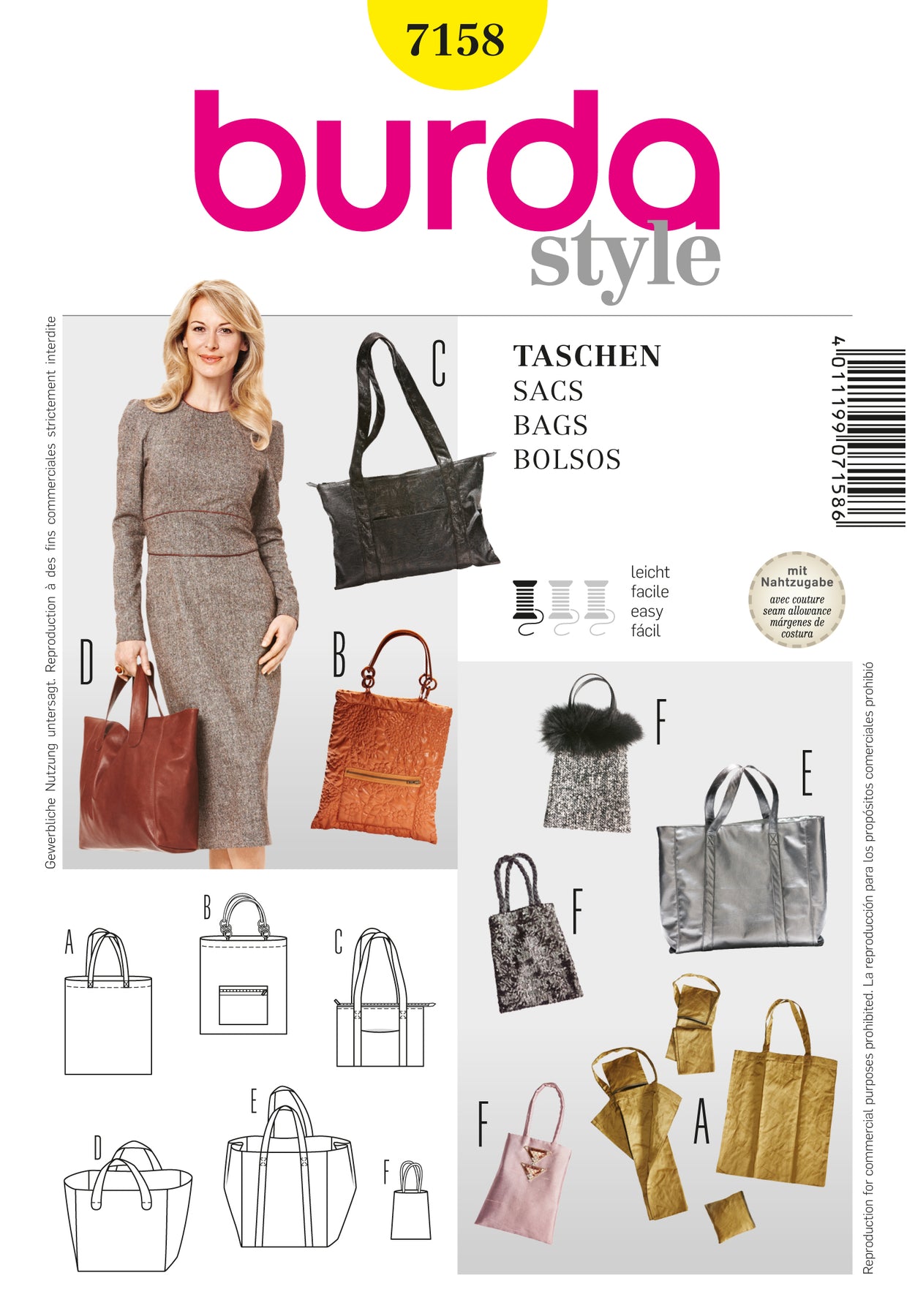 Flotte Einkaufstaschen in unterschiedlichen Größen und Aufmachungen sowie kleine Täschchen zum Ausgehen. Nähen Sie Ihr Lieblingsmodell entweder aus einem neutralen Stoff oder passend zum Outfit.