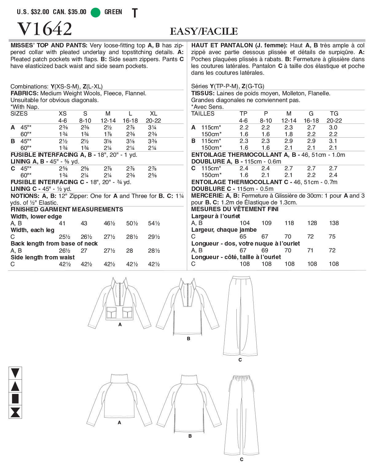 Vogue Schnittmuster V1642 Damen Hose & Pullover