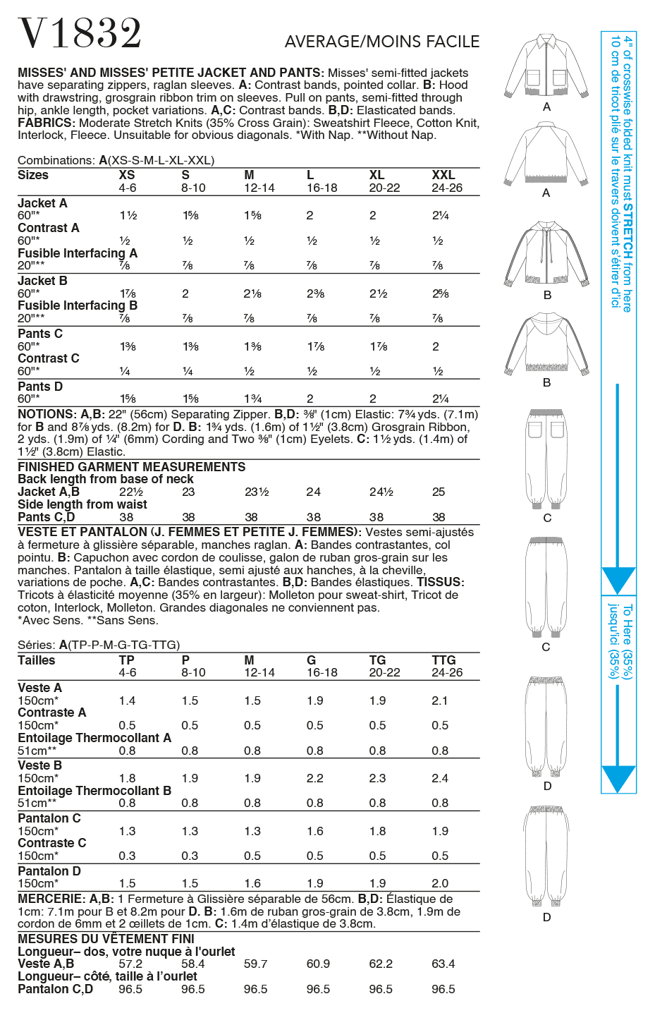 Vogue Schnittmuster V1832 Damen Jacke und Hose