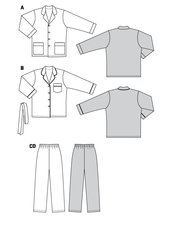 Stoffempfehlung:Baumwollpopeline, Satin, Seide, Flanell AB: Aufbügelbare Einlage, 4 Knöpfe. B: Paspelband: 3,10 - 3,20 m. CD: Gummiband, 1 cm breit: 1,70 - 2,10 m.