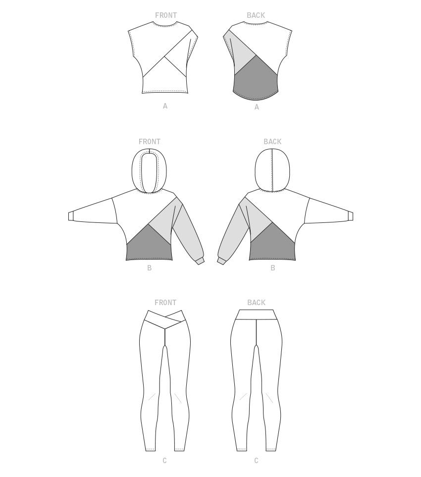 Stoffempfehlung:Sportliche Maschenware (75% Vier-Wege-Stretch-Maschenware). Hinweis: Der Stoffbedarf erlaubt Flor, einseitiges Design oder Schattierungen. Zusätzlicher Stoff kann zur Anpassung an das Design oder für die Passform erforderlich sein.