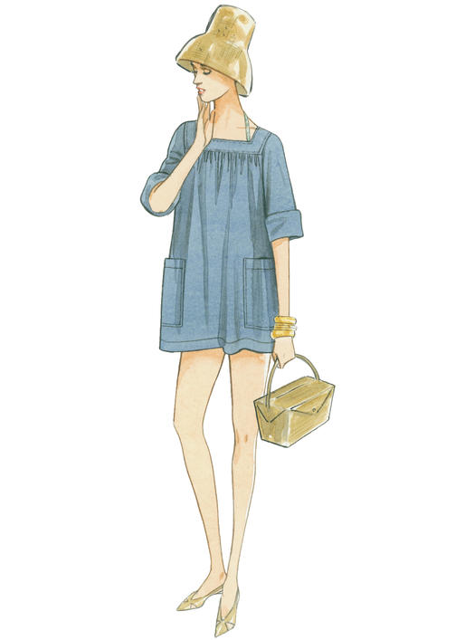 Stoffempfehlung:Denim, Gingham, Baumwollbreitgewebe, Pique, Popeline. Auch für Coverup: Gaze, Voile, Leinen. Nicht geeignet für offensichtliche Diagonalen.