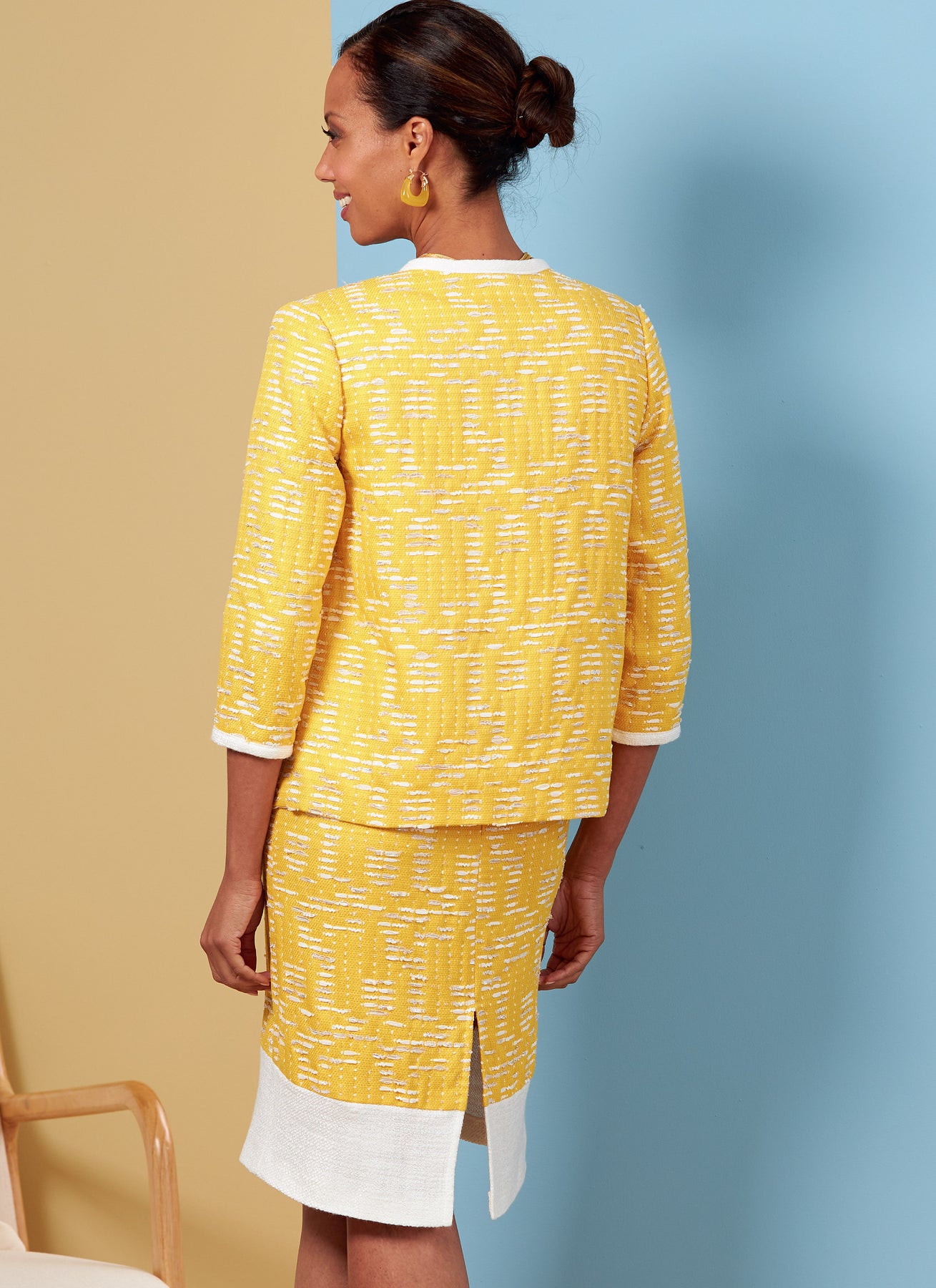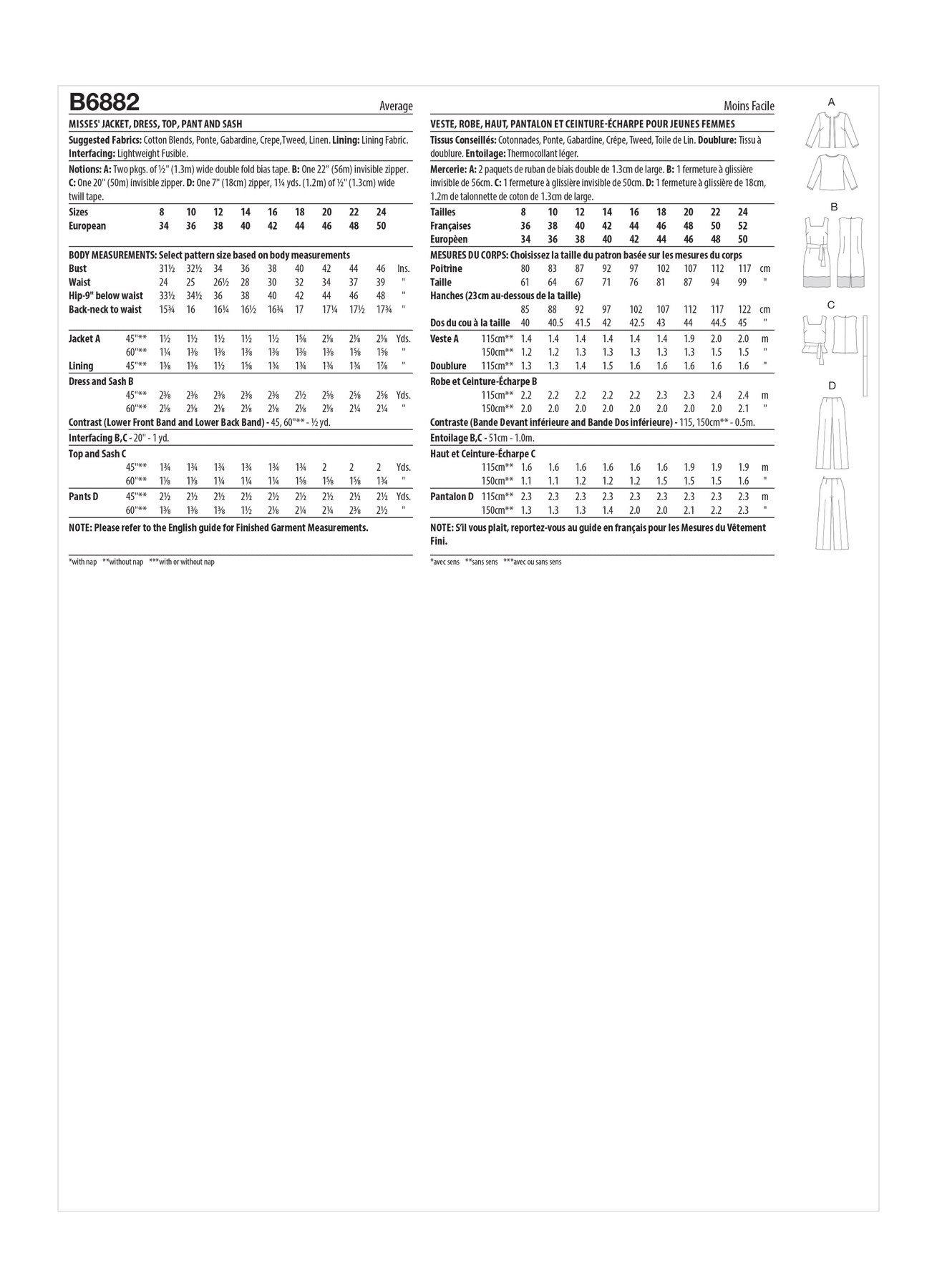 Stoffempfehlung:Baumwollmischungen, Ponte, Gabardine, Krepp, Tweed, Leinen. Innenfutter: Futterstoff. Einlage: Leichtes Fixiermaterial.