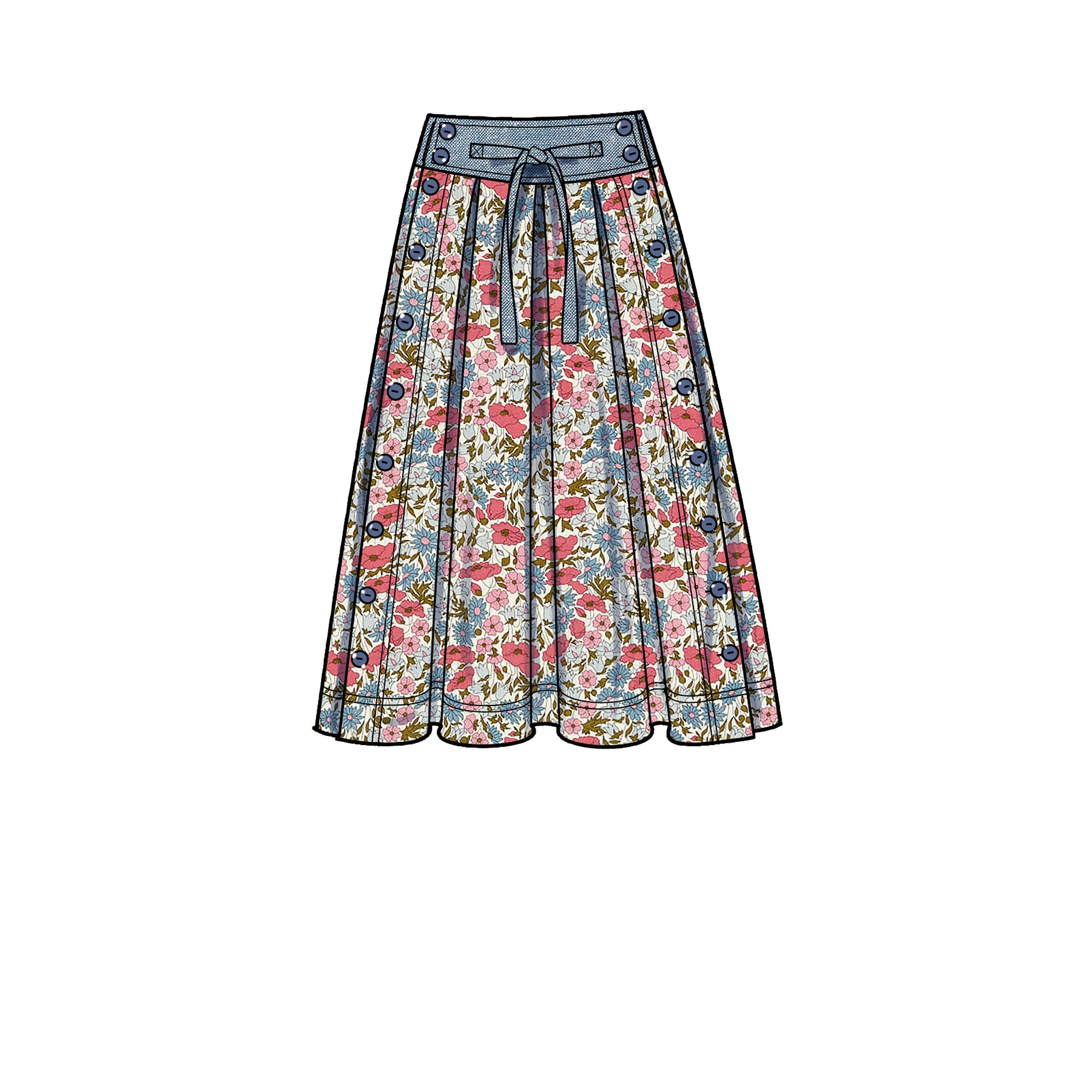 Ausgestellte Röcke in zwei Längen, mit Knopfverschlussvariationen, mit weichen Falten in der Hüftpasse, Seitennahttaschen. Personalisieren Sie Ihren Rock mit den perfekten Knöpfen!