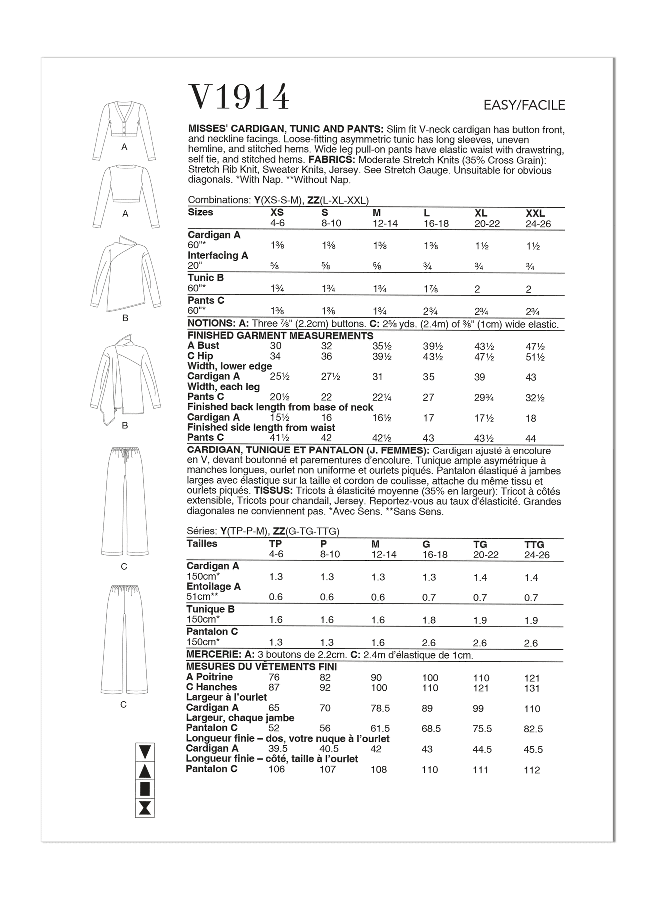 Stoffempfehlung:Mäßig dehnbare Maschenware (35% Cross Grain): Stretch-Rippstrick, Pulloverstrick, Jersey. Siehe Stretch Gauge.