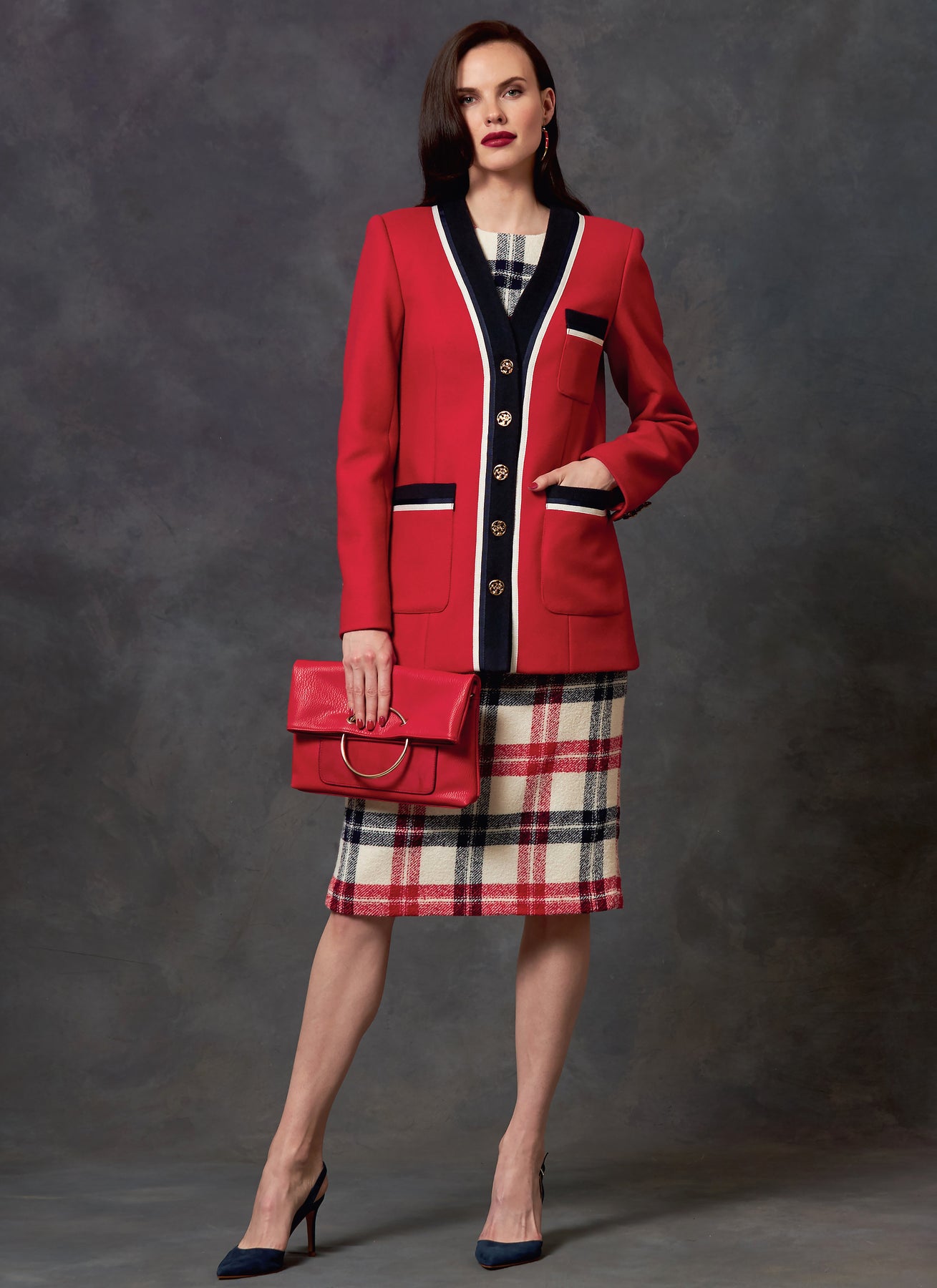 Ein Schnittmuster mit 3 Kleidungsstücken. Hier kann man nichts falsch machen, denn es gibt sicher etwas für jeden Anlass. Ein schönes Etui Kleid , ein langer Retro Faltenrock und ein langer Mantel in 2 Varianten. Alles kann perfekt miteinander kombiniert werden.