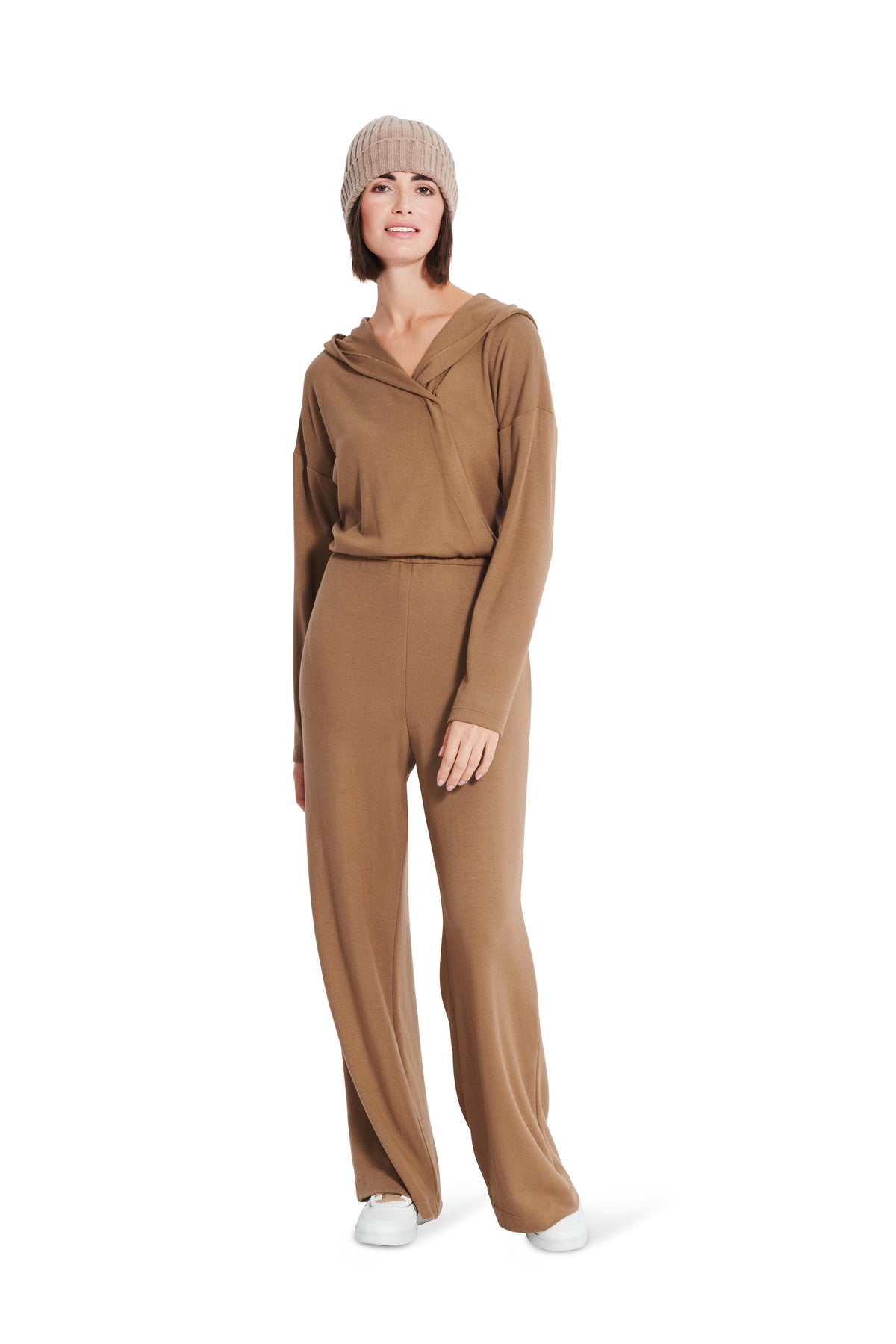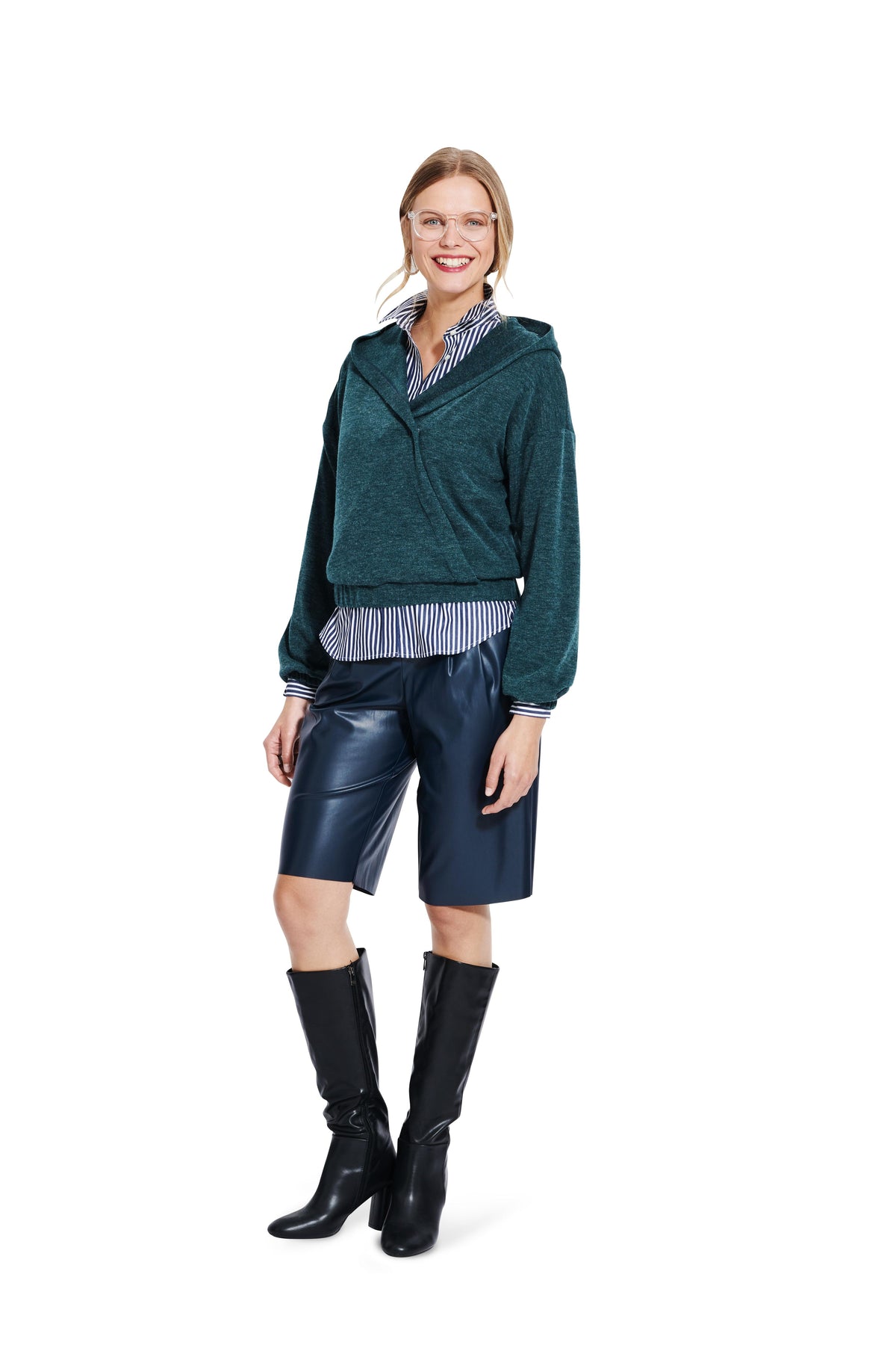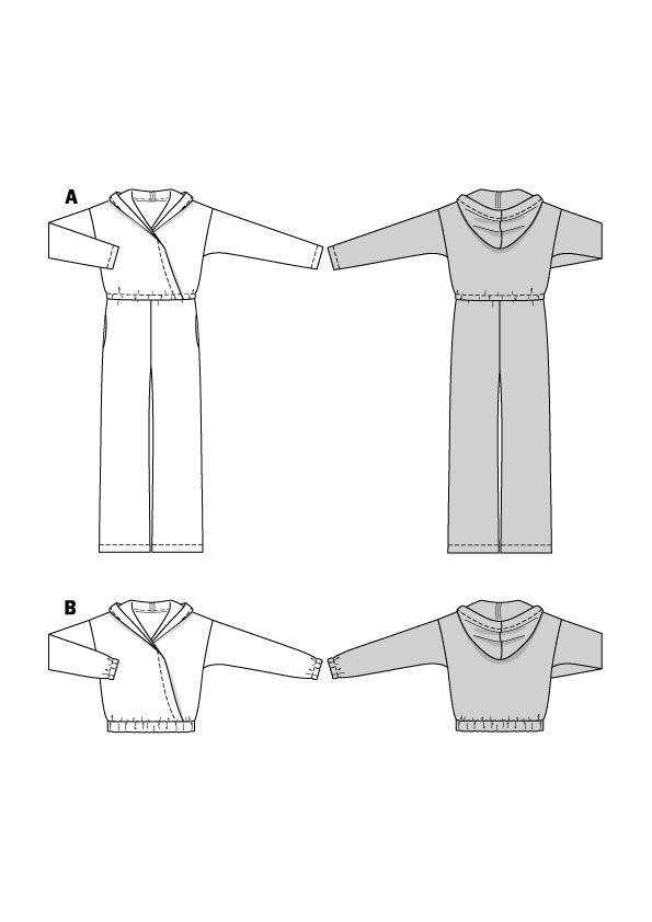 Basis ist der super lässige Hoody (Modell B) mit Wickeleffekt und Gummidurchzug. Bei Variante A kommt die Hose mit gerader Beinweite und seitl. Eingrifftaschen noch dazu - fertig ist der stylische Overall, der zu Ihrem Lieblingsstück werden könnte.