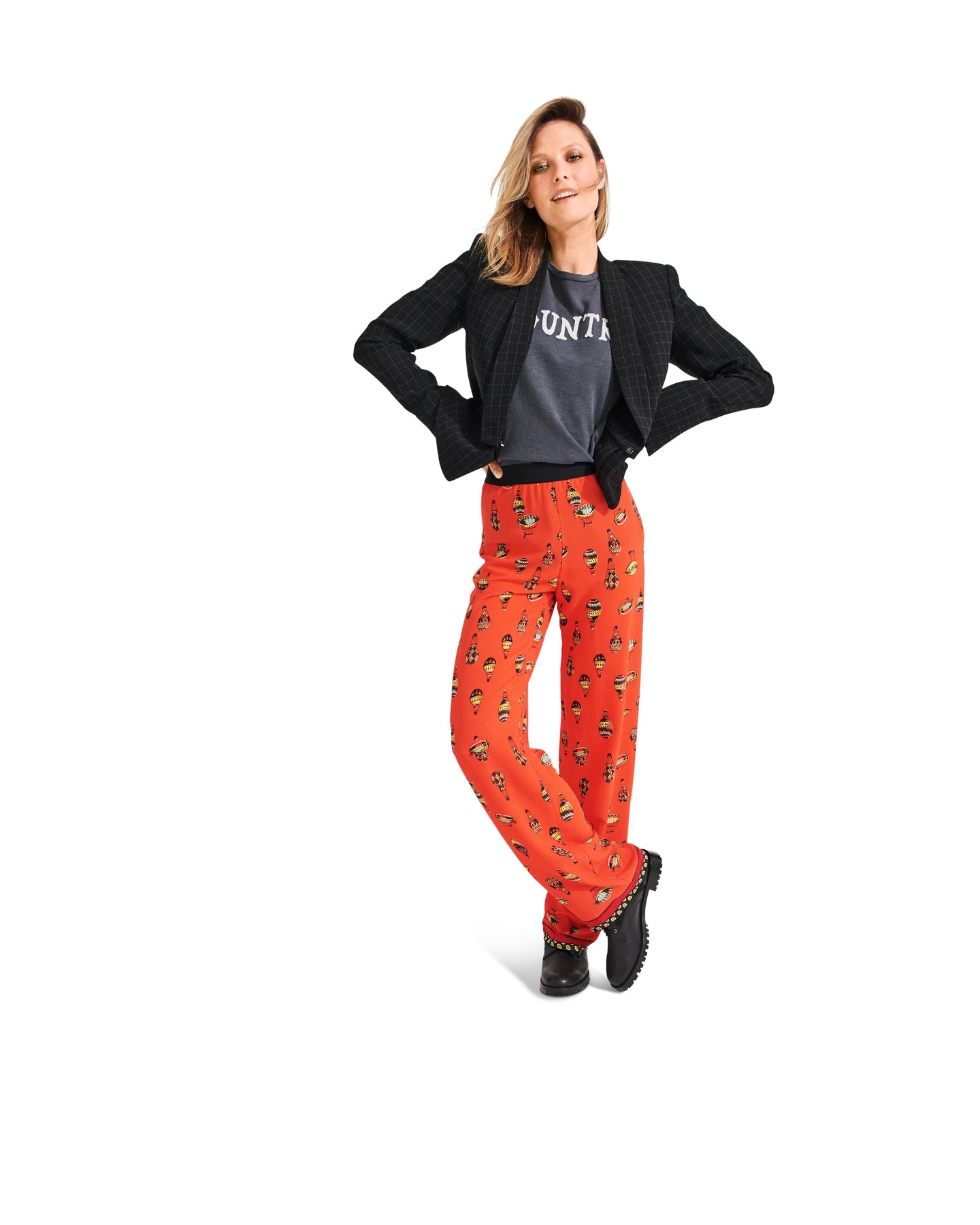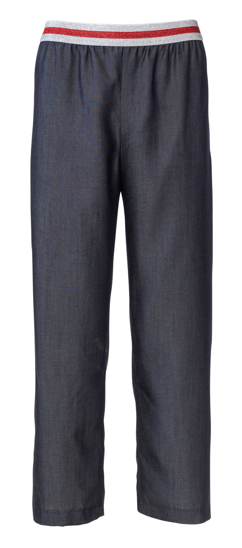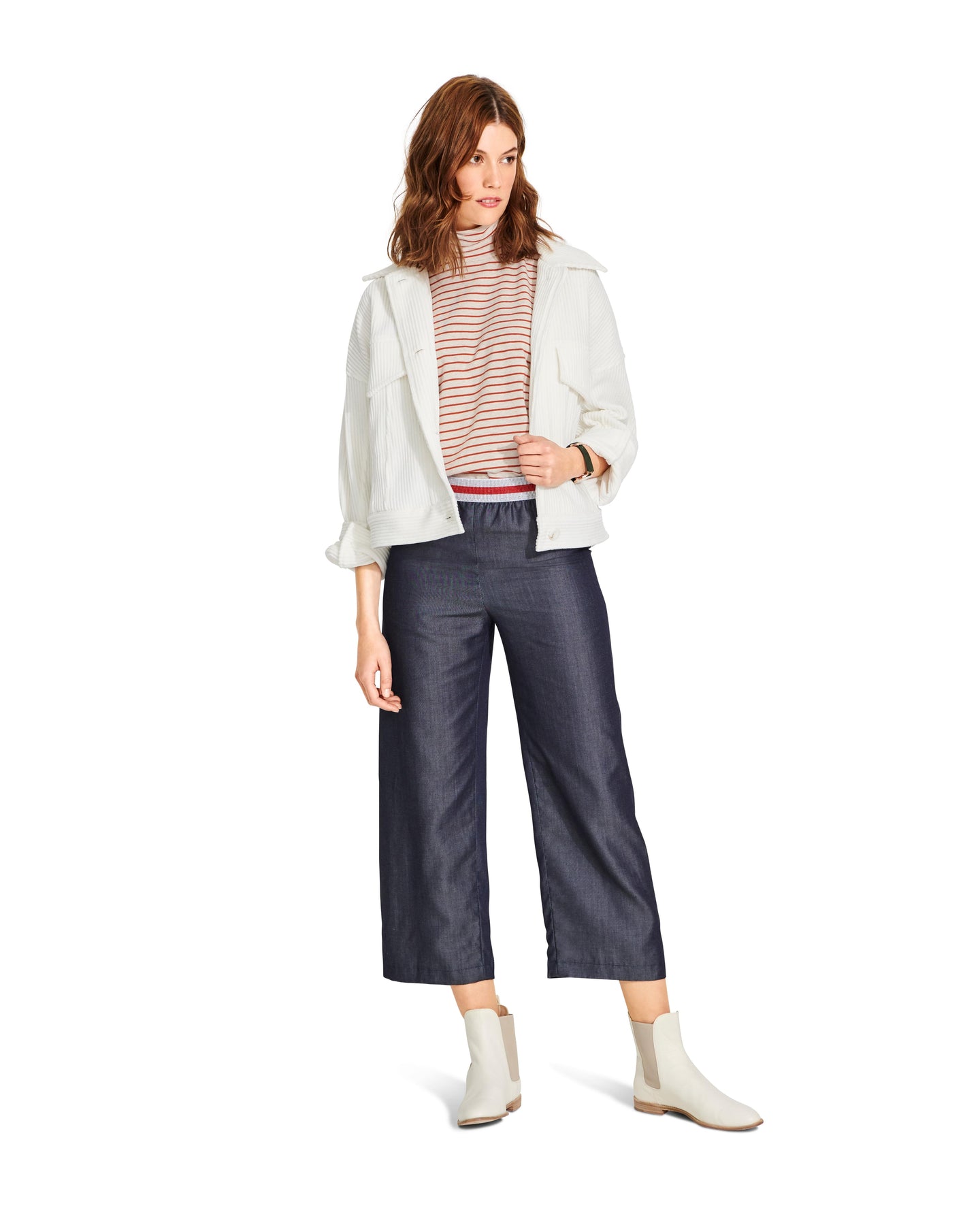 Diese auf das Wesentliche reduzierte Schlupfhose ist variabler, als man auf den ersten Blick glaubt. A schlicht mit schönem Print. B in der gekürzten Form als Culotte. Angesagte Kordeldurchzüge am Saum und aufgesetzte Taschen bringen bei C einen Cargo-Look. Ein bequemer Elastikbund sorgt bei allen für Halt.