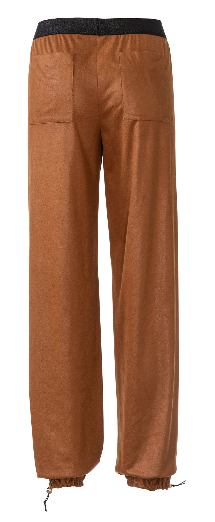 Stoffempfehlung:Gabardine, Kreppstoffe, Baumwollstoffe, Lederimitat ABC: Aufbügelbare Einlage. Elastikbund, 4 cm breit: 0,75 - 0,95 m. C: Kordel: 1,00 m. 4 Ösen zum Einnieten. 2 Kordelstopper