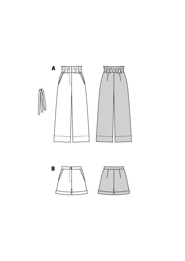 Lässig in kurz oder lang sind diese Hosen mit Reißverschluss und Hüftpassentaschen. A im angesagten Paperbag-Style mit Extra-Bindeband und üppiger Saumweite. Shorts B haben angesetzte Saumaufschläge und einen klassischen Bund mit Knopfverschluss.