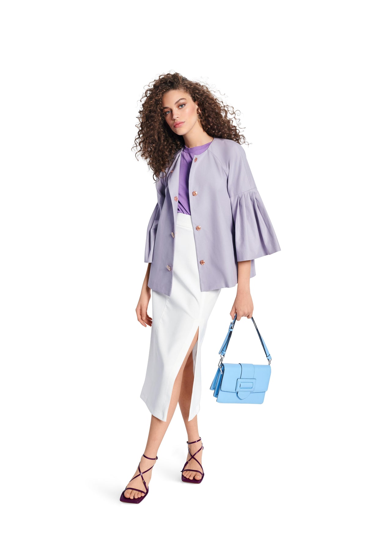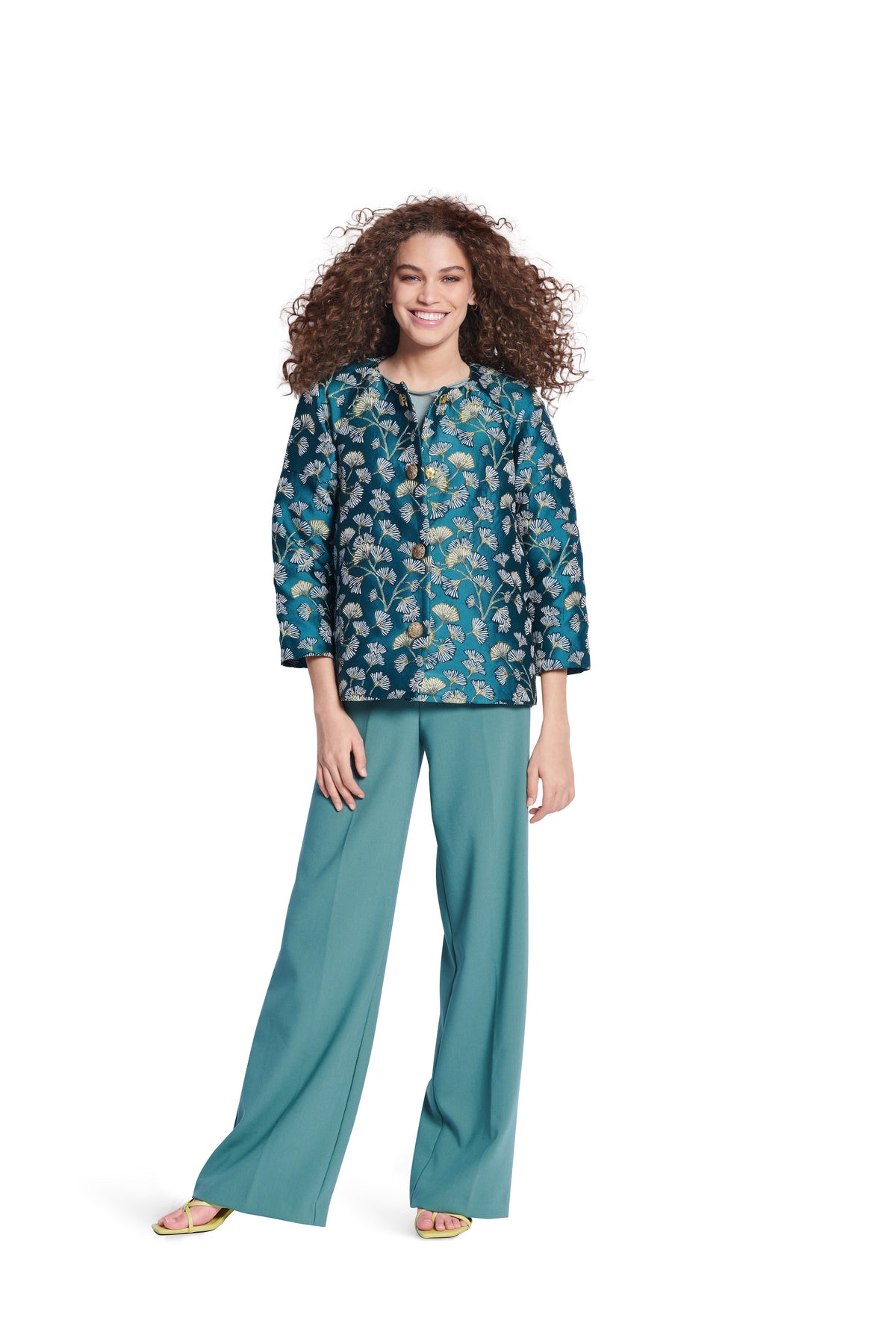 Stoffempfehlung:Gabardine, Jacquard, Mischgewebe ABC: Einlage, Knop, Druckknopf