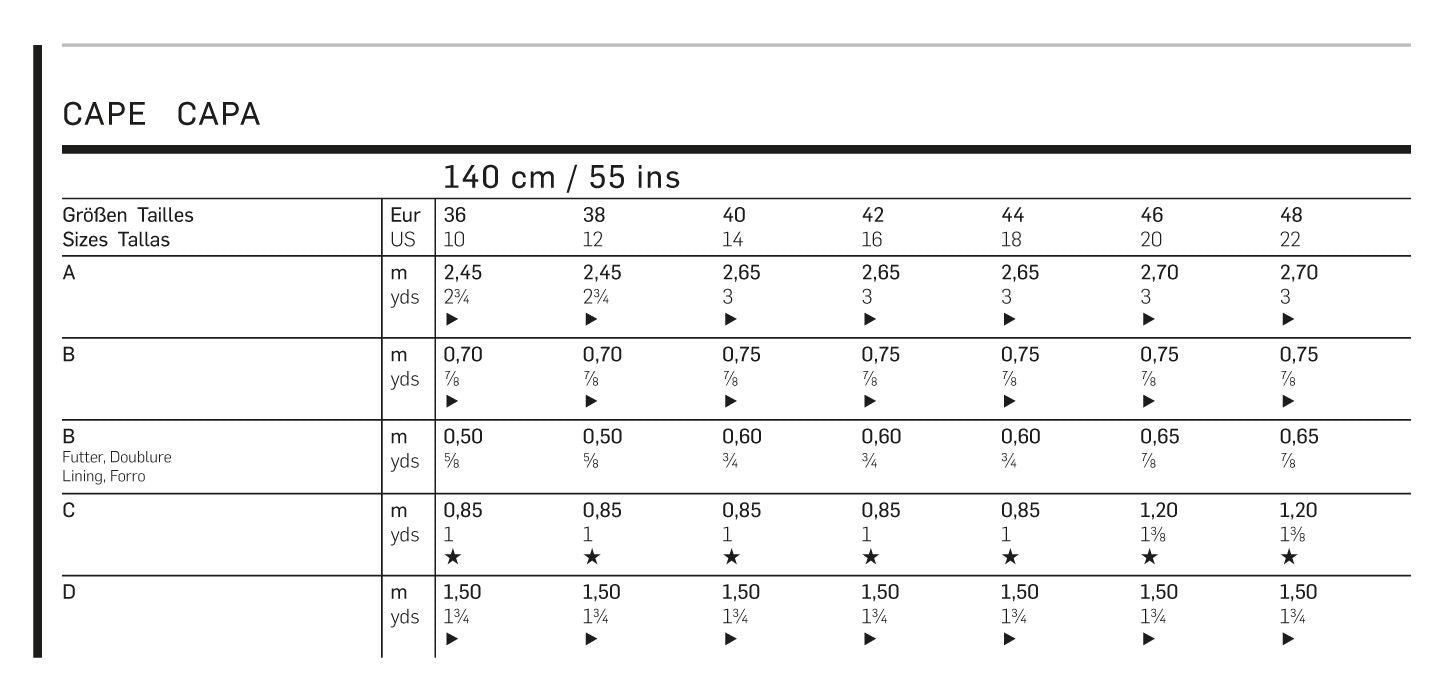 • Inklusive Nahtzugabe (außer Burda)