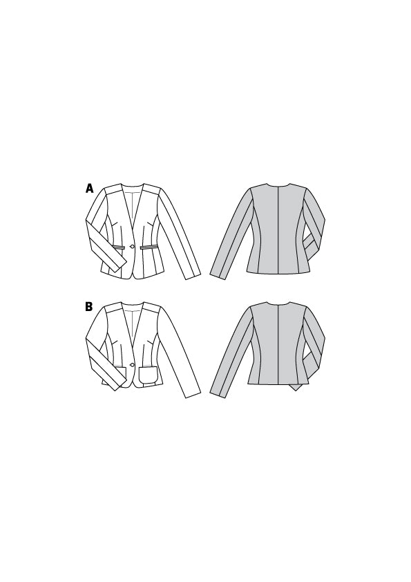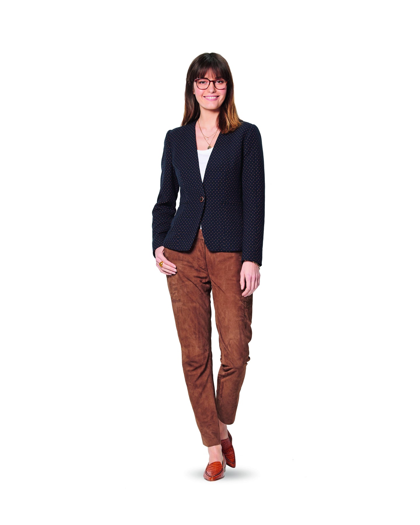 Schmaler Blazer mit V-Ausschnitt, der Klassiker um gut angezogen zu sein, egal ob im Business oder zum Ausgehen. In zwei Längen, nach Wunsch mit Paspeltaschen oder aufgesetzten Taschen. Gute Nähkenntnisse sind Voraussetzung fürs Gelingen.