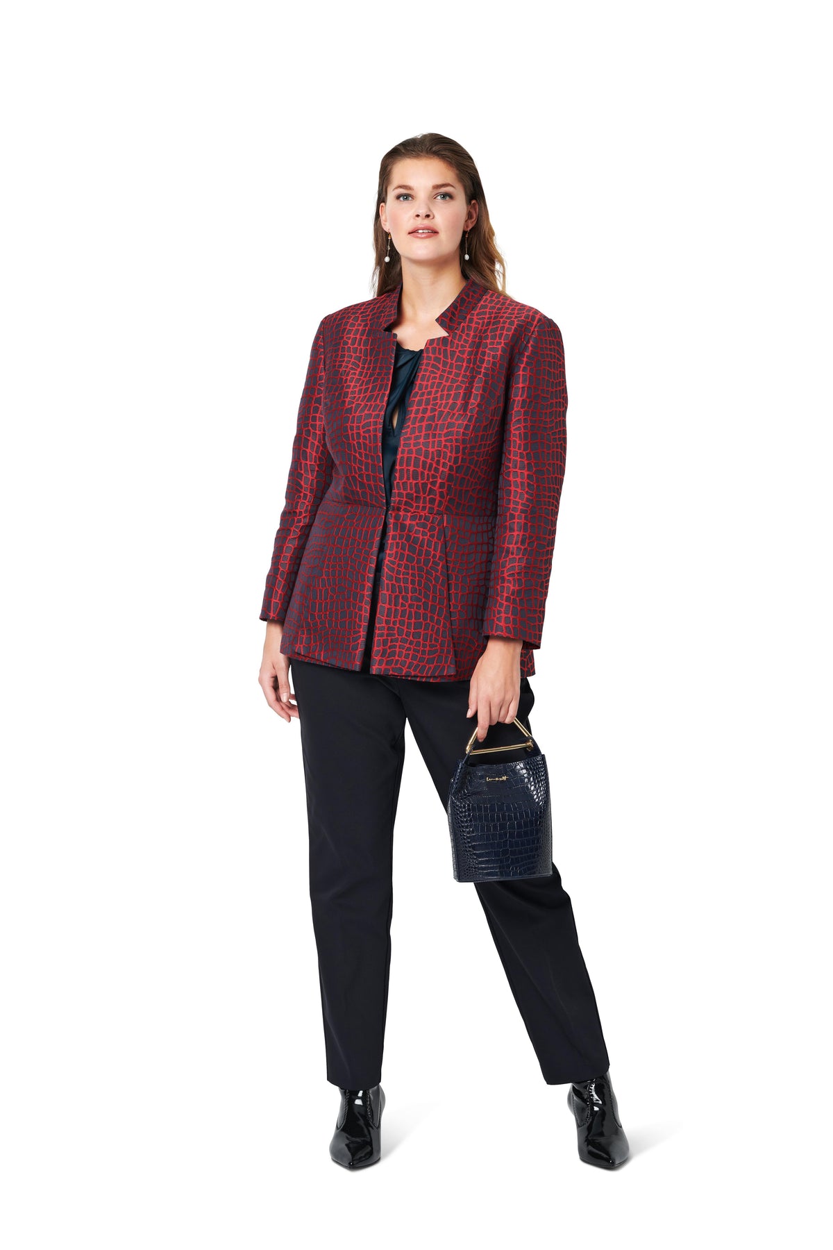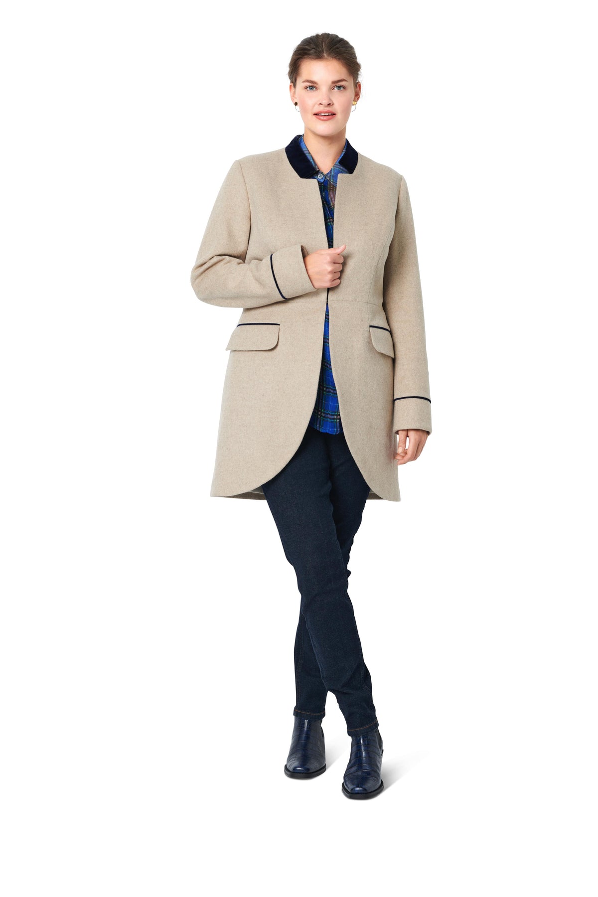 Mit dieser eleganten Jacke mit Stehkragen können Sie ihre Nähkenntnisse bei besonderen Anlässen unter Beweis stellen. Wiener Nähte und ein Schößchen sorgen für einen perfekten Sitz. A mit raffinierter Schößchenverarbeitung. B erinnert mit dem abgerundeten Saum, den Paspeln und dem Schlitz am Rückenteil an eine klassische Reitjacke.