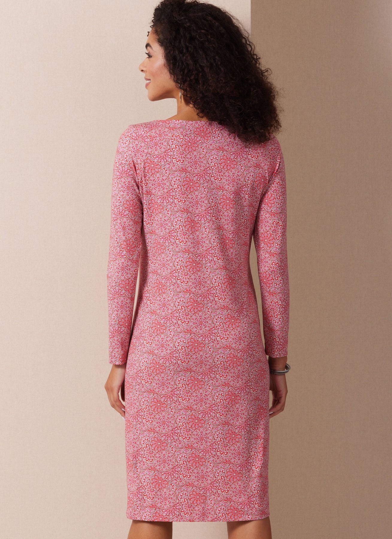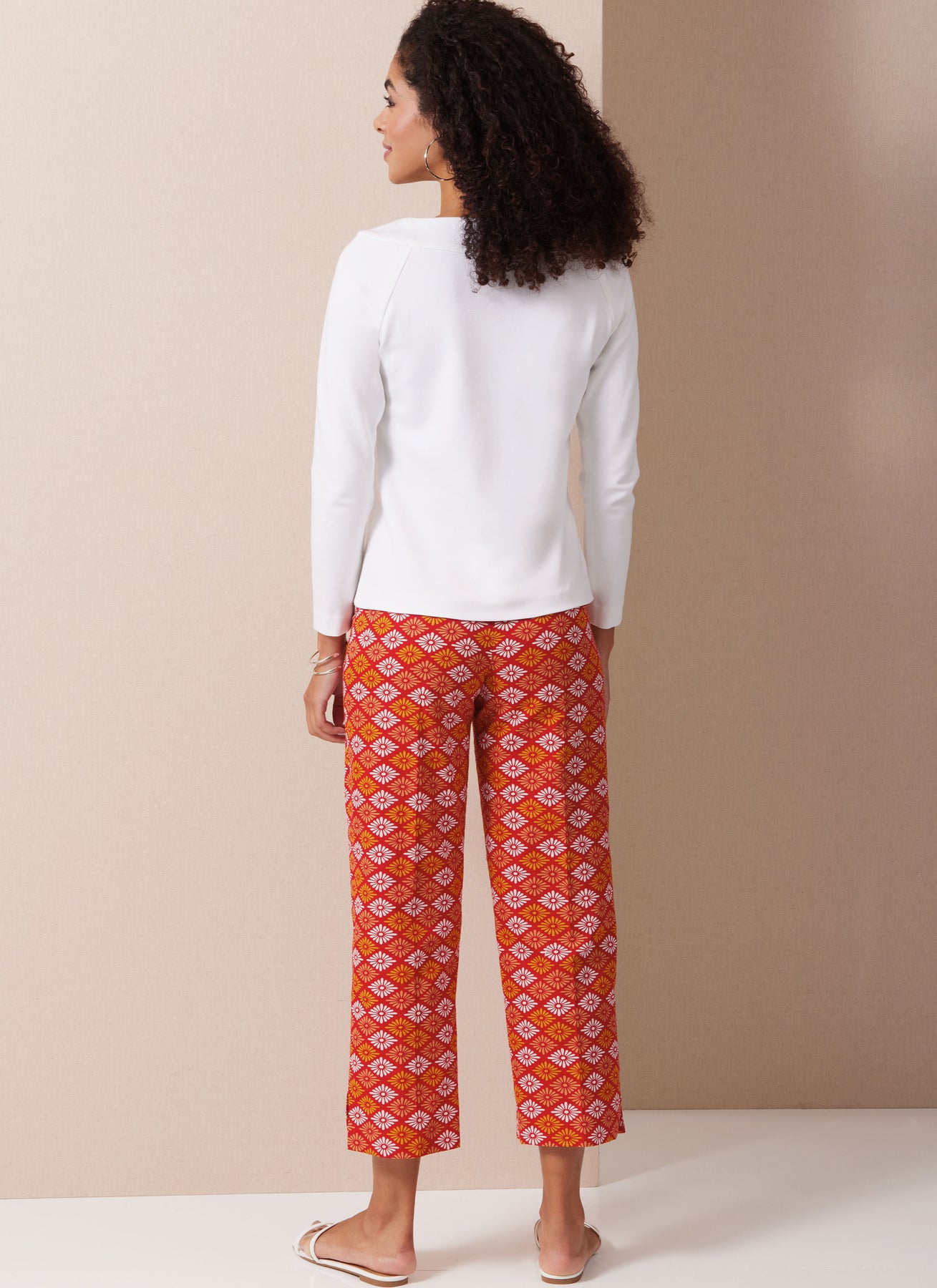 Jacke mit aufgesetzten Vordertaschen, Kragen und Steppnaht. Slim Fit Strickoberteil und Kleid haben Raglanärmel und Bündchen. Die Hosen D und E haben einen Hosenschlitz vorne, Abnäher hinten und einen konturierten Bund mit Haken und Ösen. Ansicht D ist caprilang mit Seitenschlitzen.