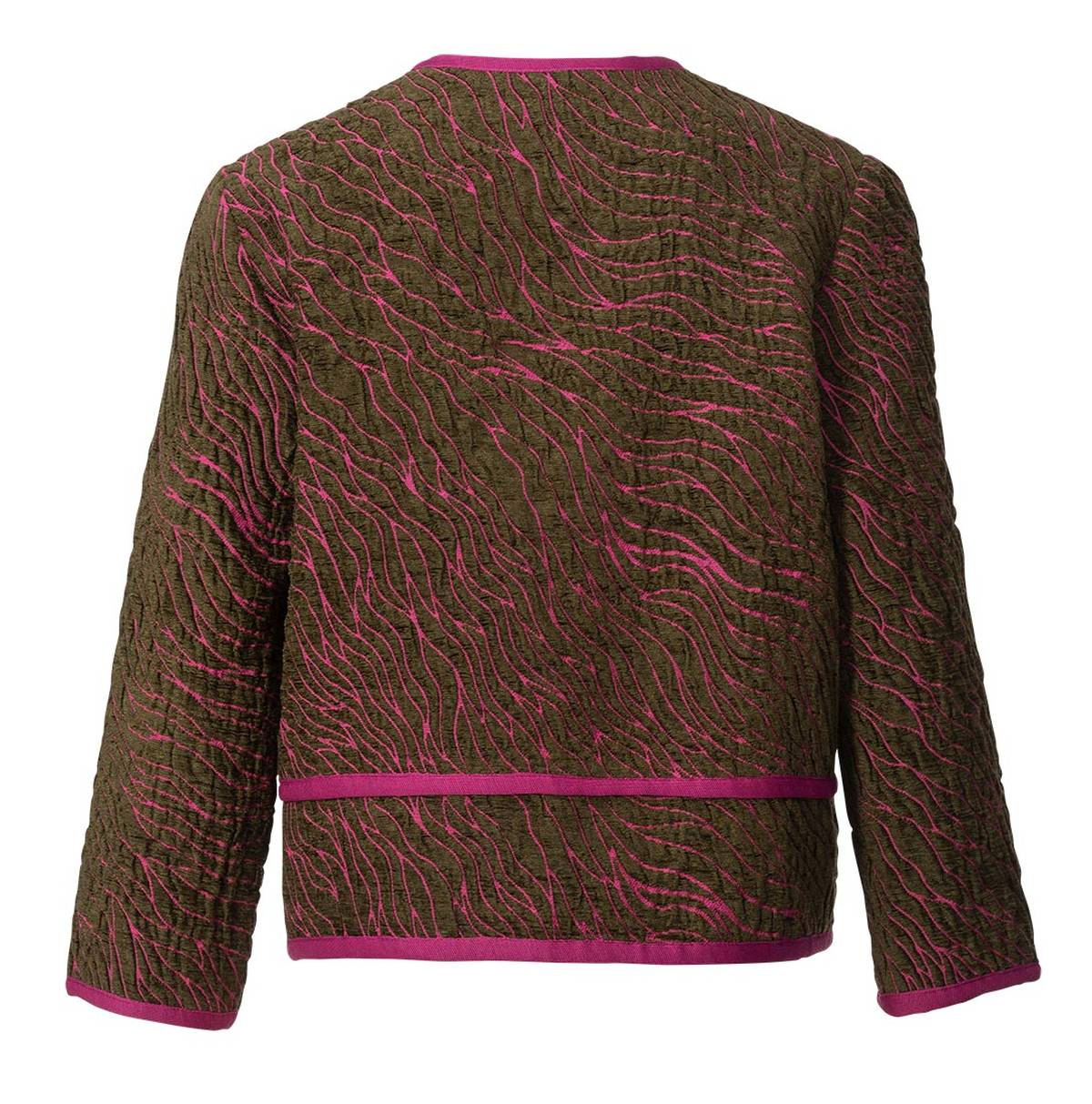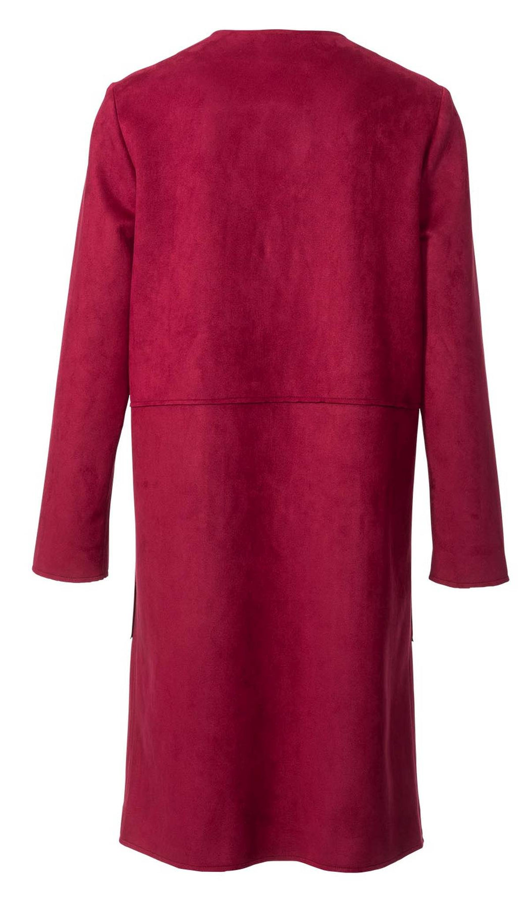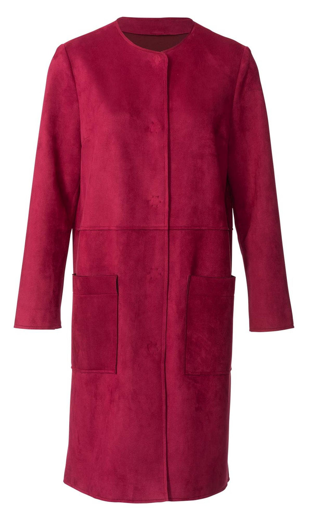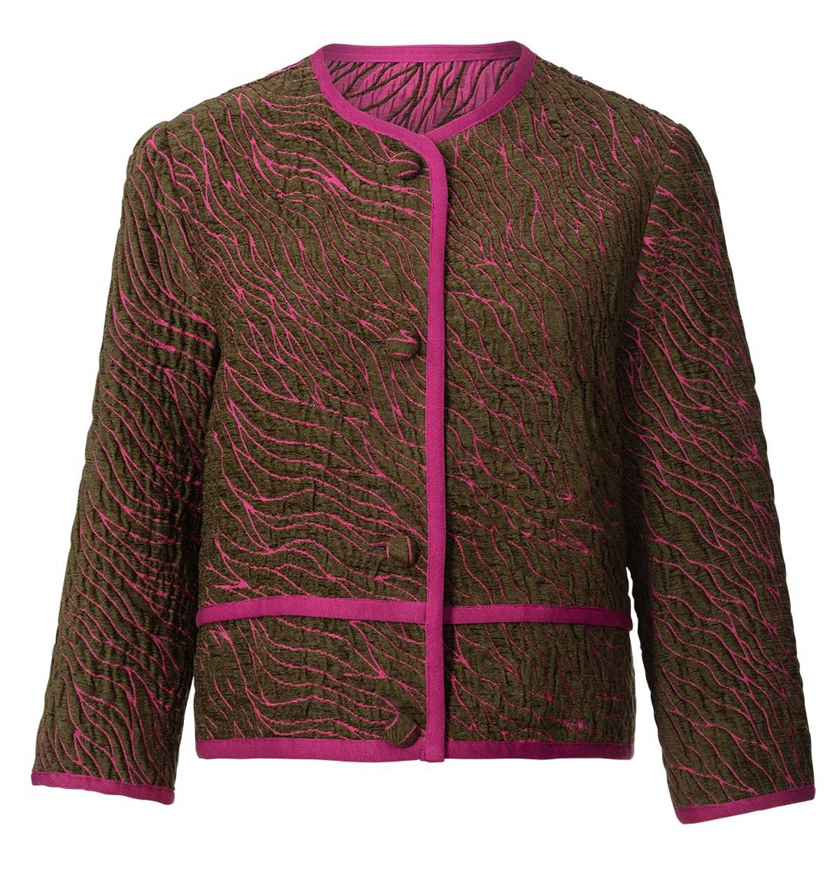 Ideal für die Übergangszeit ist dieser kragenlose knielange Mantel mit aufgesetzten Taschen oder das kurze kastenförmige Jäckchen mit eingefassten Kanten. Beide Modelle sind ungefüttert und ideal um üppige Tücher oder Schals in Szene zu setzen.