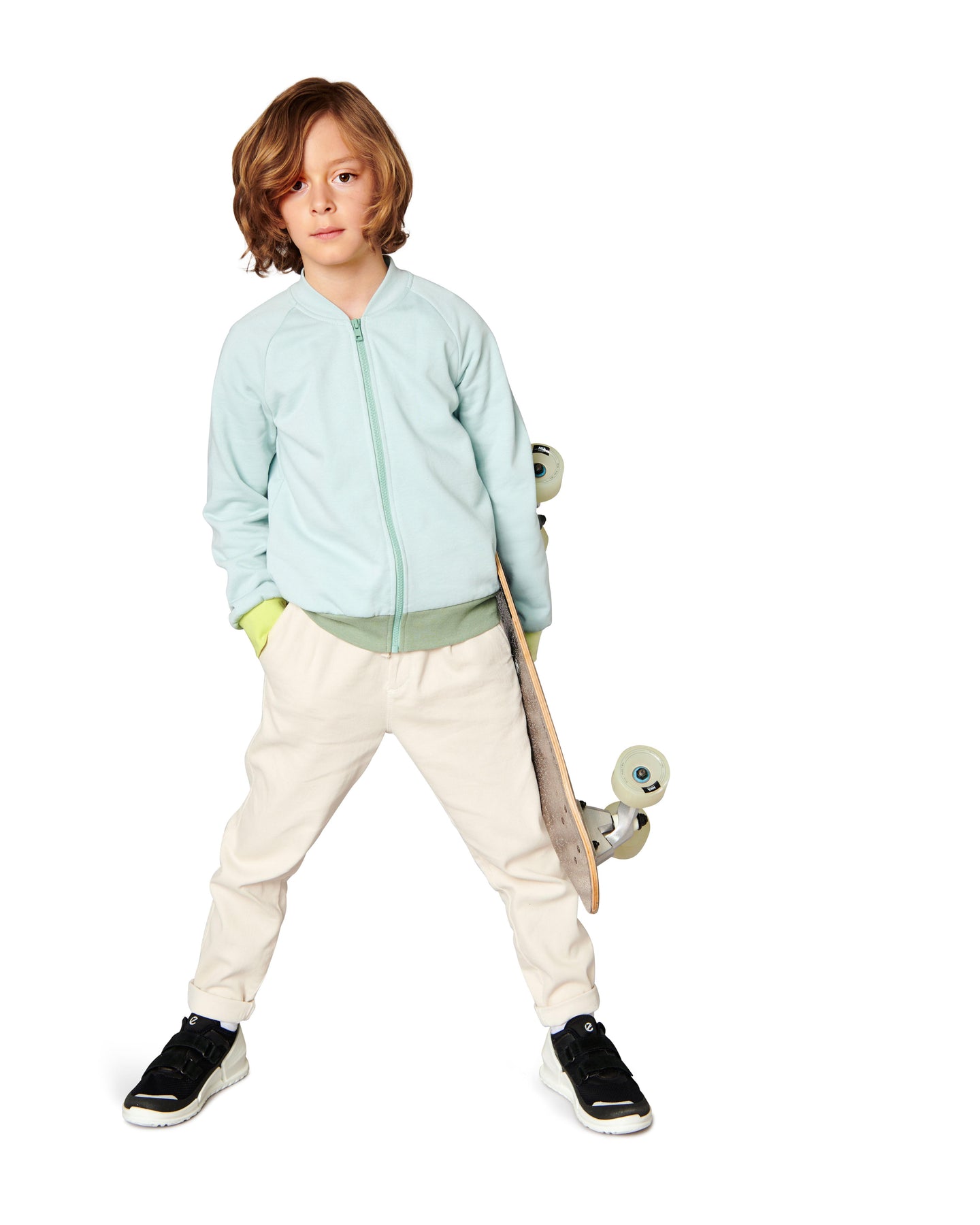 Ein lässiger Blouson mit den klassischen Attributen Raglanärmel, Reißverschluss und Bündchen an Halsausschnitt, Ärmeln und Saum ist für Jungs ein toller Begleiter in Schule und Freizeit. Die modische Variante für kleine Fashionistas hat anstatt des Saumbündchens eine breite Saumrüsche.