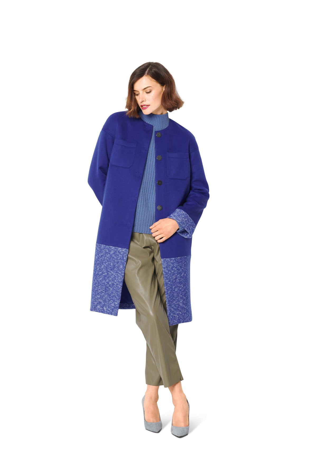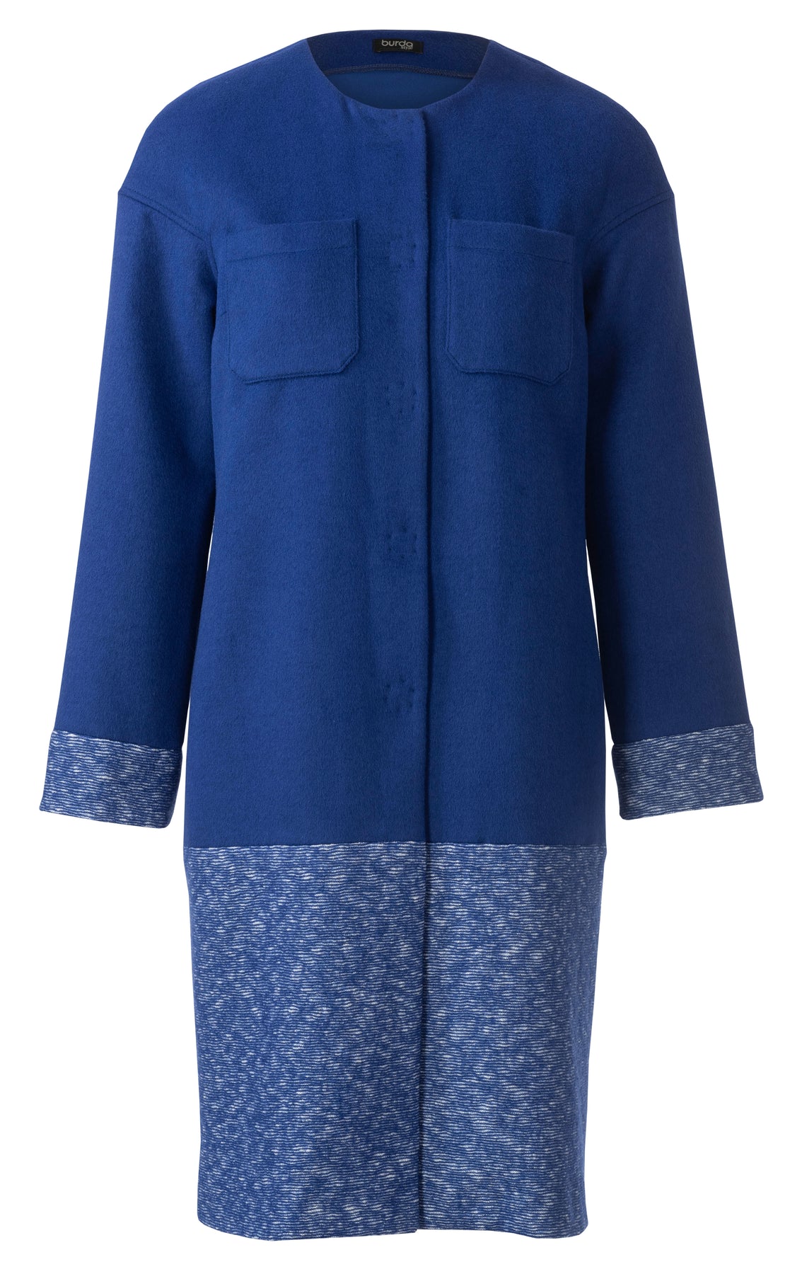 Stoffempfehlung:Wollstoffe, Walkstoffe, Jacquard, Bouclé Aufbügelbare Einlage, Band, 0,7 cm breit, A: 2,40 - 2,50 m, B: 1,80 - 1,90 m. A: 5 Druckknöpfe zum Annähen. B: 7 Knöpfe