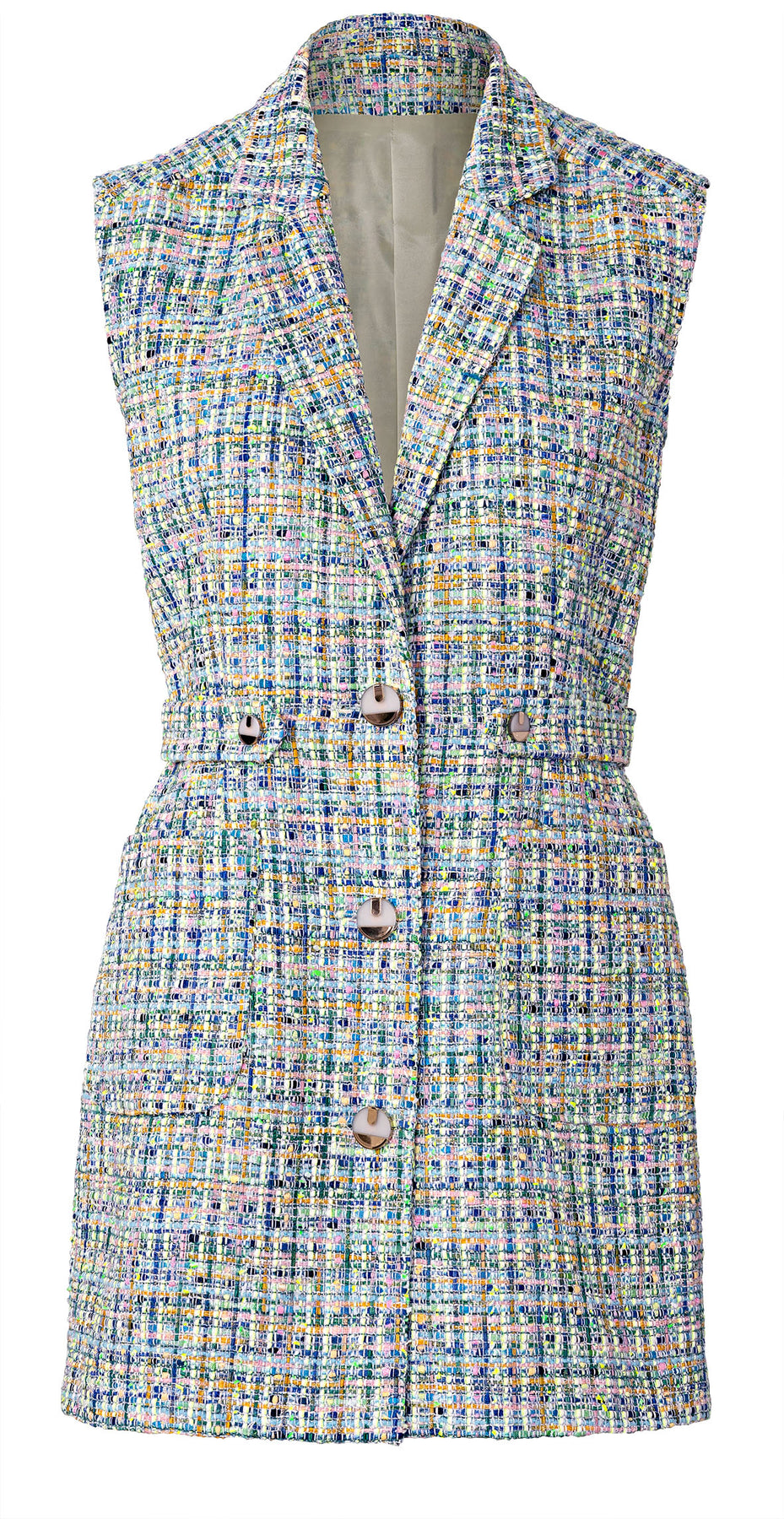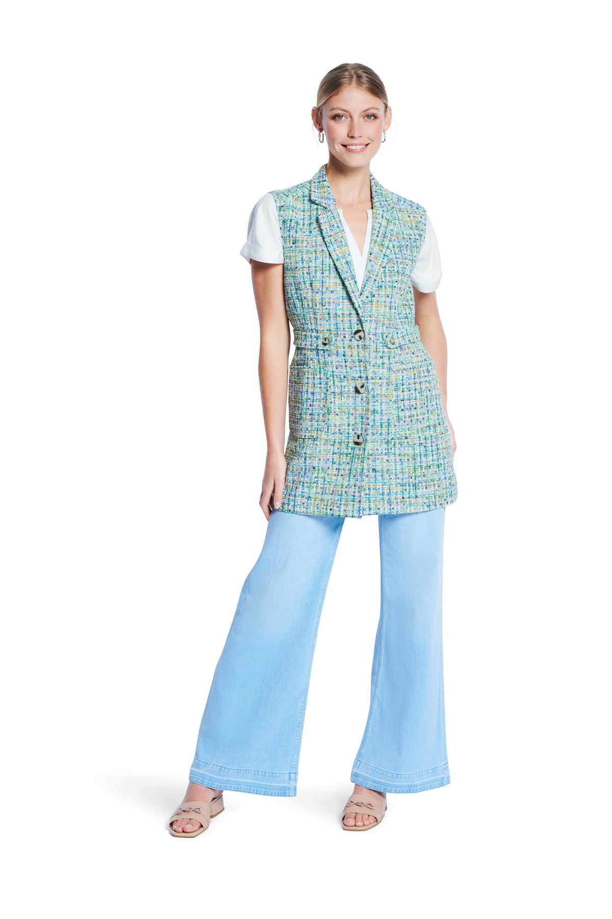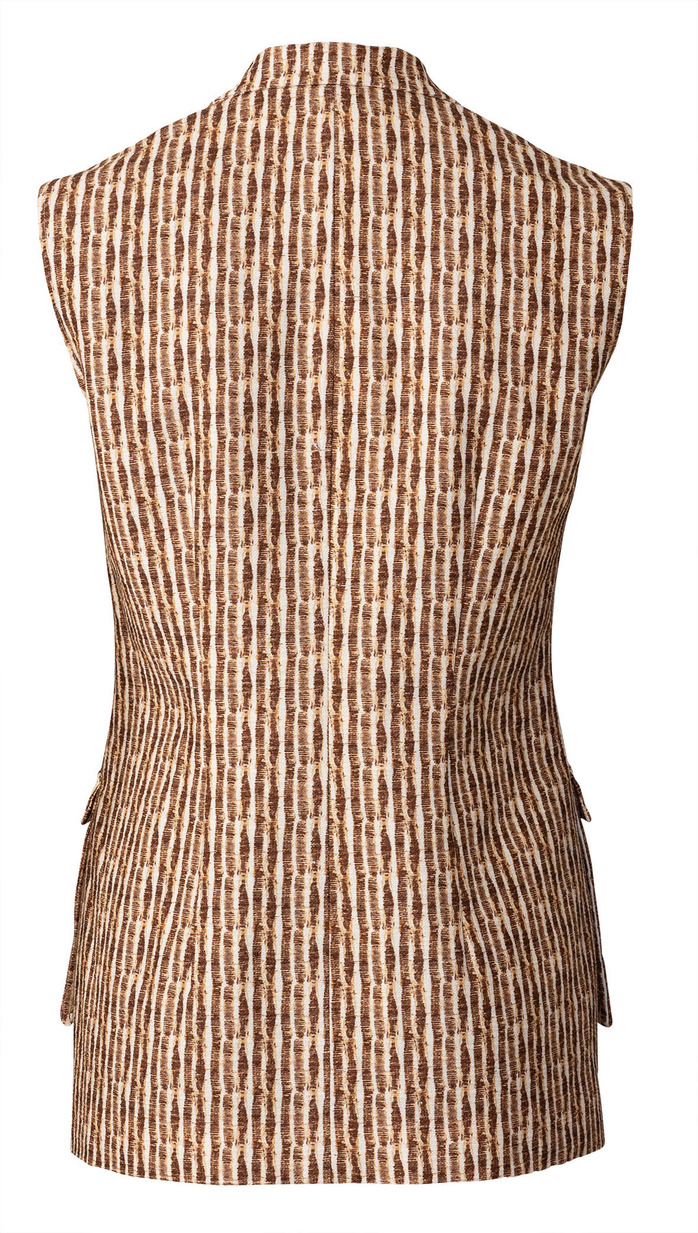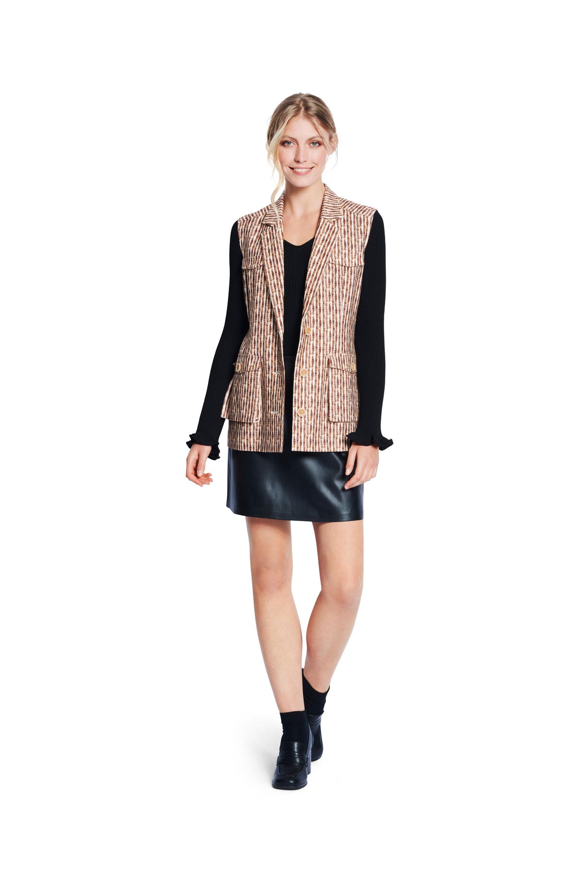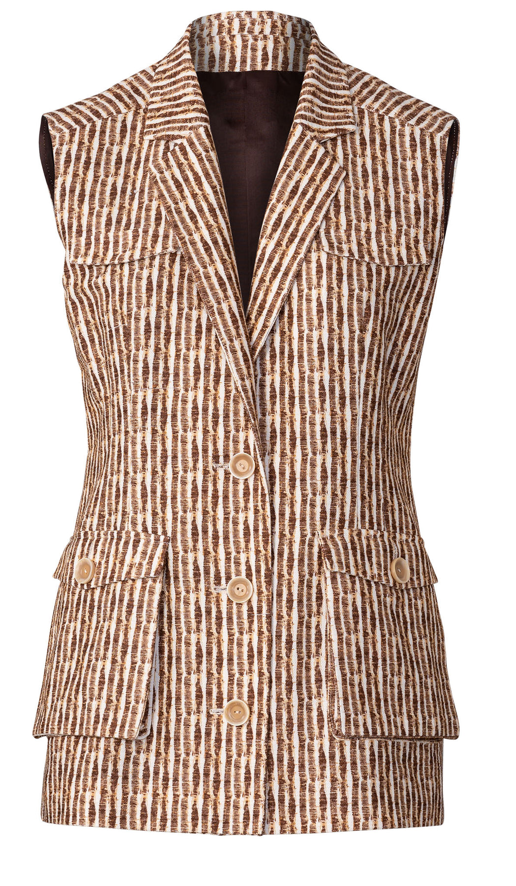 Die Weste mit lang gezogenem Revers hat die Optik eines scharf geschnittenen Blazers und den Chic eines Little French Jackets. Und auch der Westen-Schnitt mit Klappentaschen ist total elegant. Beide sind auch perfekt dafür geeignet, ein leichtes Sommerurlaubsoutfit schick zu stylen. Der Reverskragen streckt den Körper optisch. Zwei anspruchsvolle Schnittmuster in einem Set!