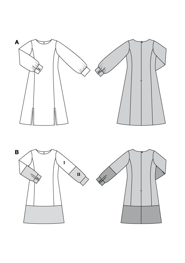 Entdecke dieses curvy Damenkleid-Schnittmuster, das gleich zwei Varianten enthält! Das A-Linie Kleid mit raffinierten Prinzessnähten und schwingenden Teilungsnähten bietet Bewegungsfreiheit und schmeichelt der Figur. Das Kleider-Schnittmuster mit Manschetten vereint Sportlichkeit mit elegantem Touch durch Color-Blocking und exakte Manschetten. Perfekt für Krepp, Viskose oder Seide. Style dich smart und bequem zugleich!