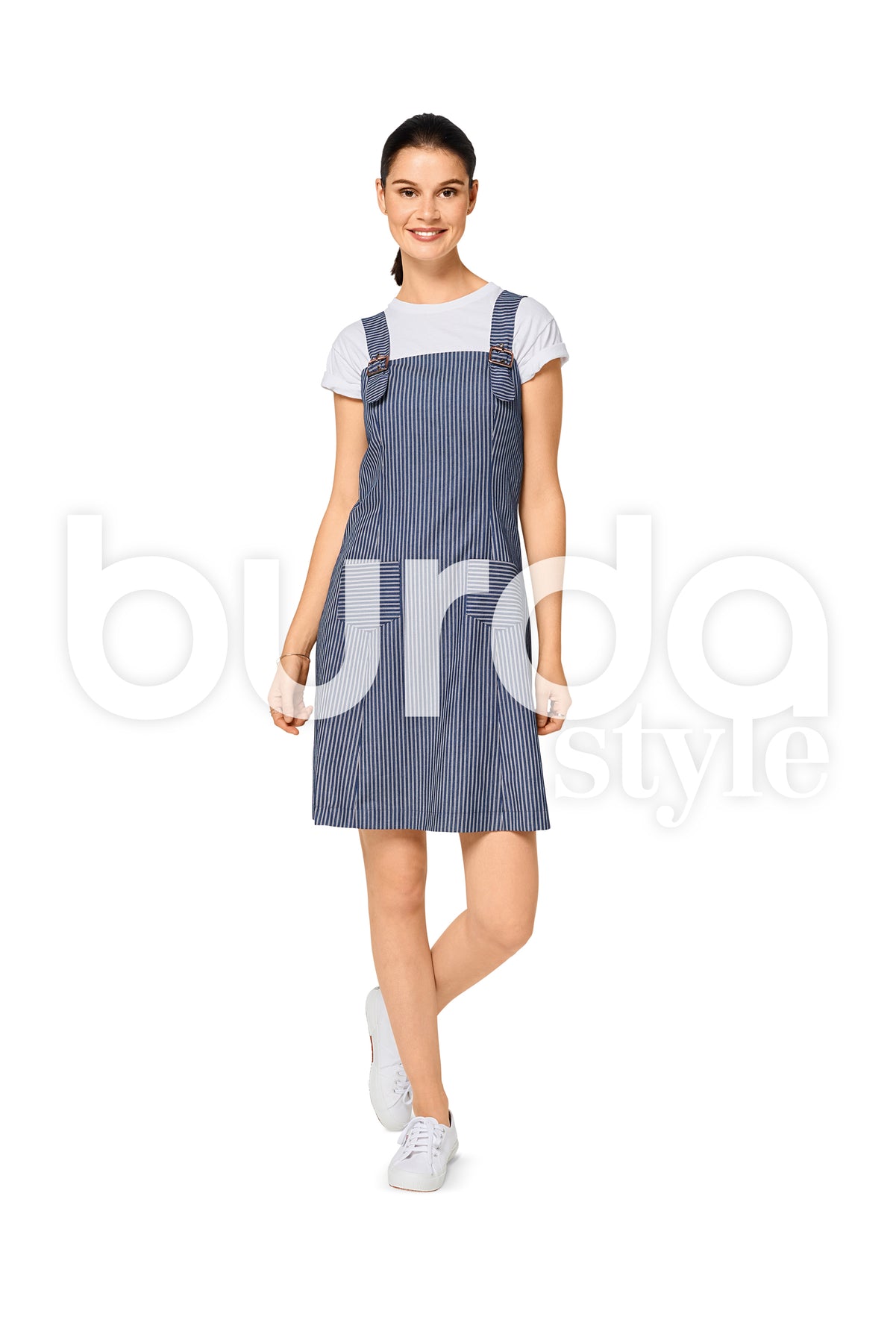 Freche Trägerkleider mit Teilungsnähten, nach unten ausgestellt. Kleid B mit aufgesetzten Taschen. Solo für heiße Tage oder über einem schlichten T-shirt getragen.