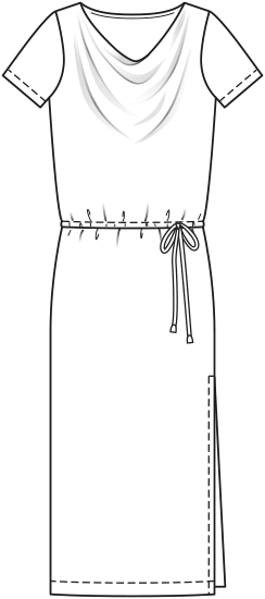 Jerseykleid - Wasserfall - Banddurchzug Das ideale Jerseykleid für Frauen, die es lieber etwas lockerer lieben. Der weich fallende Wasserfall-Ausschnitt sowie der Banddurchzug mit etwas Schopplänge erzielt den figurumspielenden Fall des aparten Kleides. Weiterer Pluspunkt: Es ist für Nähanfänger geeignet.