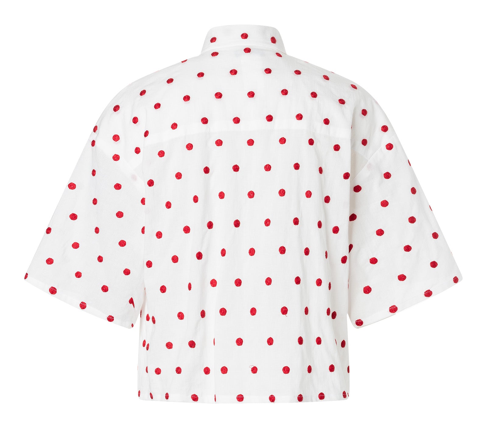 Das Minikleid interpretiert maskuline Elemente wie Hemdkragen, Knopfleiste und XL-Tasche neu und kombiniert sie mit ultrafemininer Lochspitze – ein stilvoller Mix aus Strenge und Romantik. Die kastig geschnittene Bluse mit weiten, krempelbaren Ärmeln überzeugt durch ihre Vielseitigkeit: elegant und puristisch zum Bleistiftrock oder lässig geknotet für entspannte Sommerlooks.