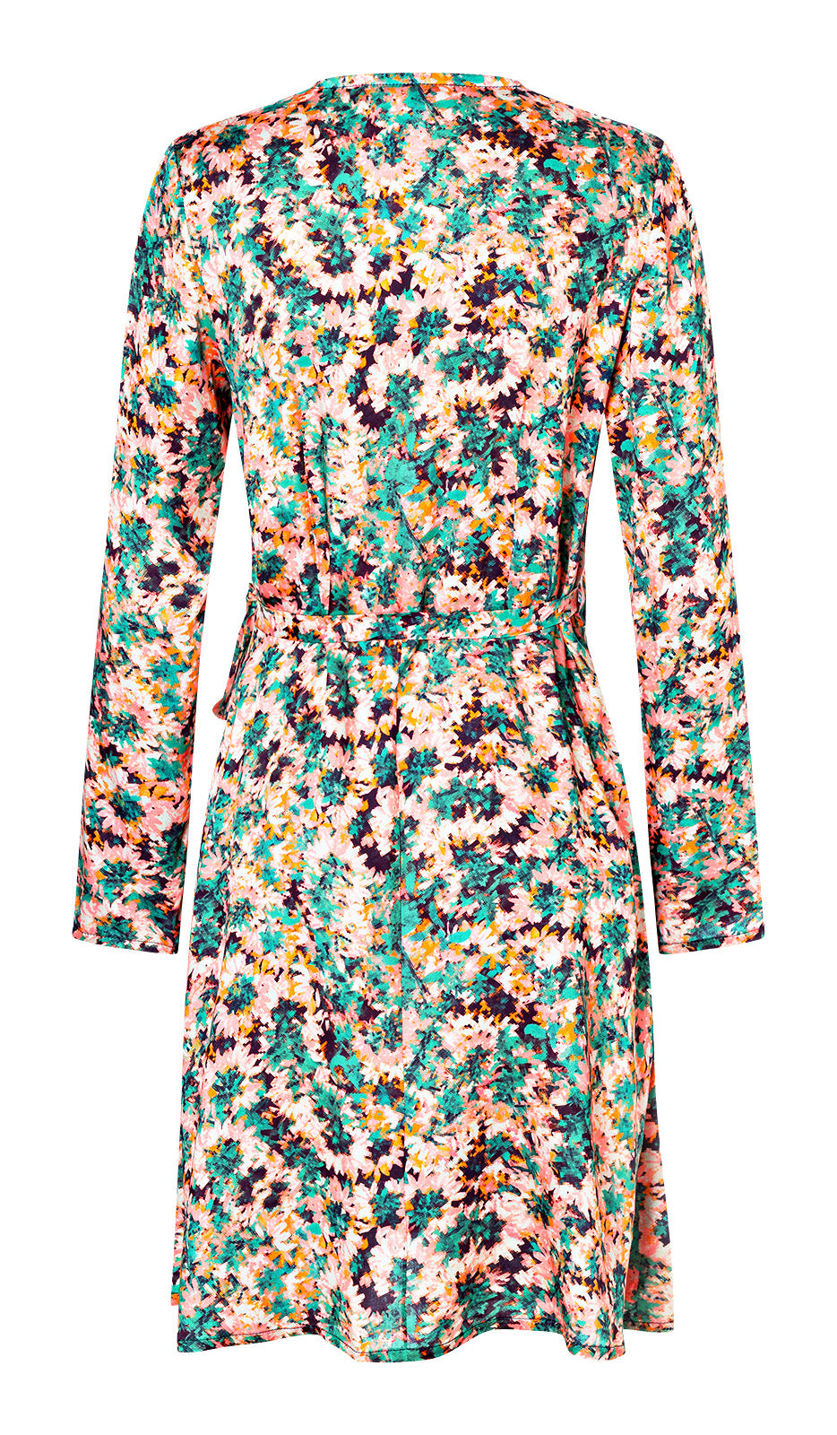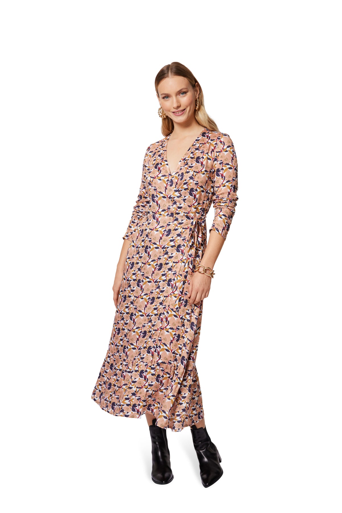 Drei Wickelkleider mit V-Ausschnitt bieten stilvolle Varianten für unterschiedliche Looks: Ein kurz geschnittenes Modell schmiegt sich sanft an den Körper und zaubert eine elegante Silhouette. Die midilange, geblümte Variante begeistert mit breiter Rüsche und optionalen Taschen in den Seitennähten – verspielt und zugleich alltagstauglich. Das knielange Kleid mit farbenfrohem Patchwork-Print und dezentem Kragen setzt einen spannenden Akzent und verleiht dem Design einen Hauch moderner Strenge.