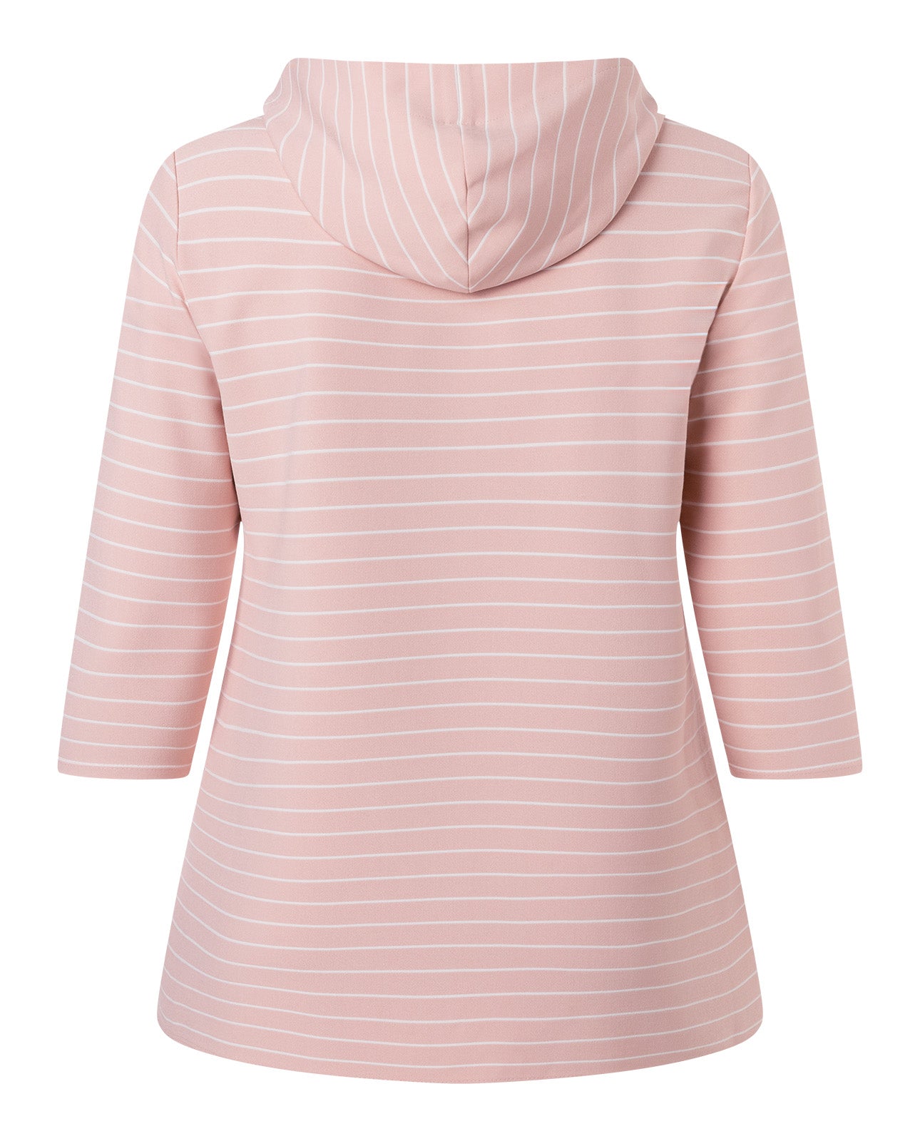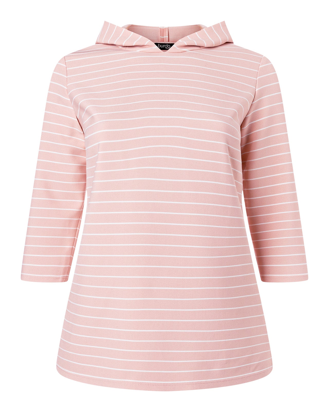 Der Hoodie überzeugt mit weich fallender Kapuze, verkürzten Ärmeln und sportiver Silhouette. Besonders schön wirkt das Modell in zartem Streifensweat. Die Ärmellänge kann bei Bedarf unkompliziert verlängert werden – für einen individuellen Look.