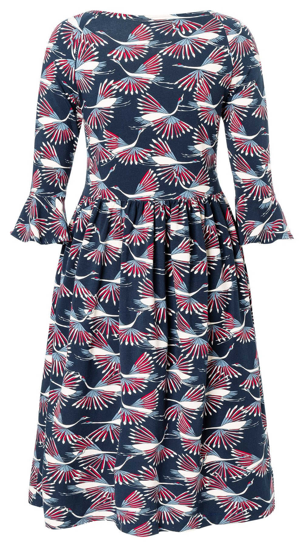 Variante C: Ein bequemes Day-Dress mit figurnahem Schnitt und femininen Volants. Dank Bio-Jersey mit Elastan bietet es optimalen Tragekomfort.