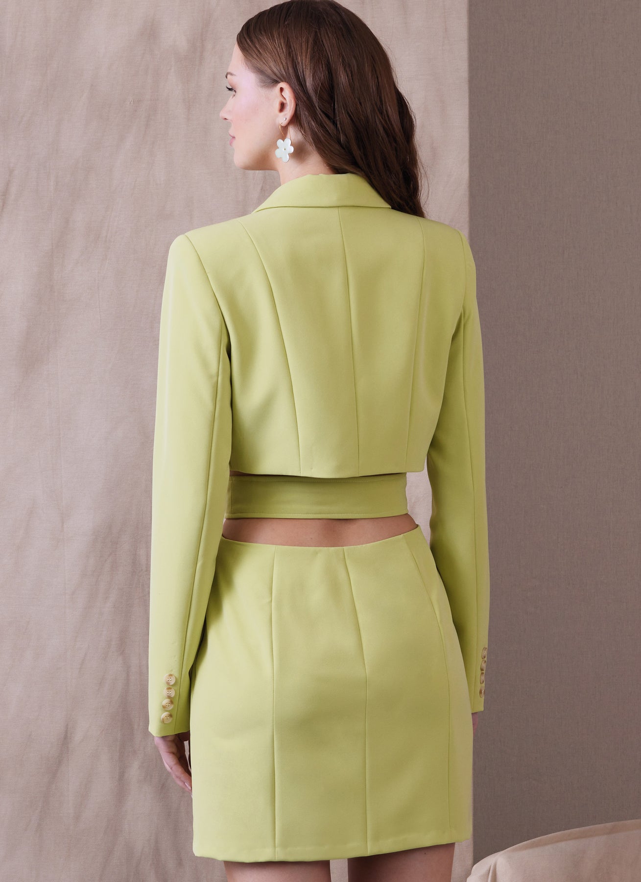 Stoffempfehlung:Mittelschwere Wolle, Gabardine, Leinenmischungen, Twill. Einlage: Leichtes Fixiermaterial. Futter: Futterstoff.