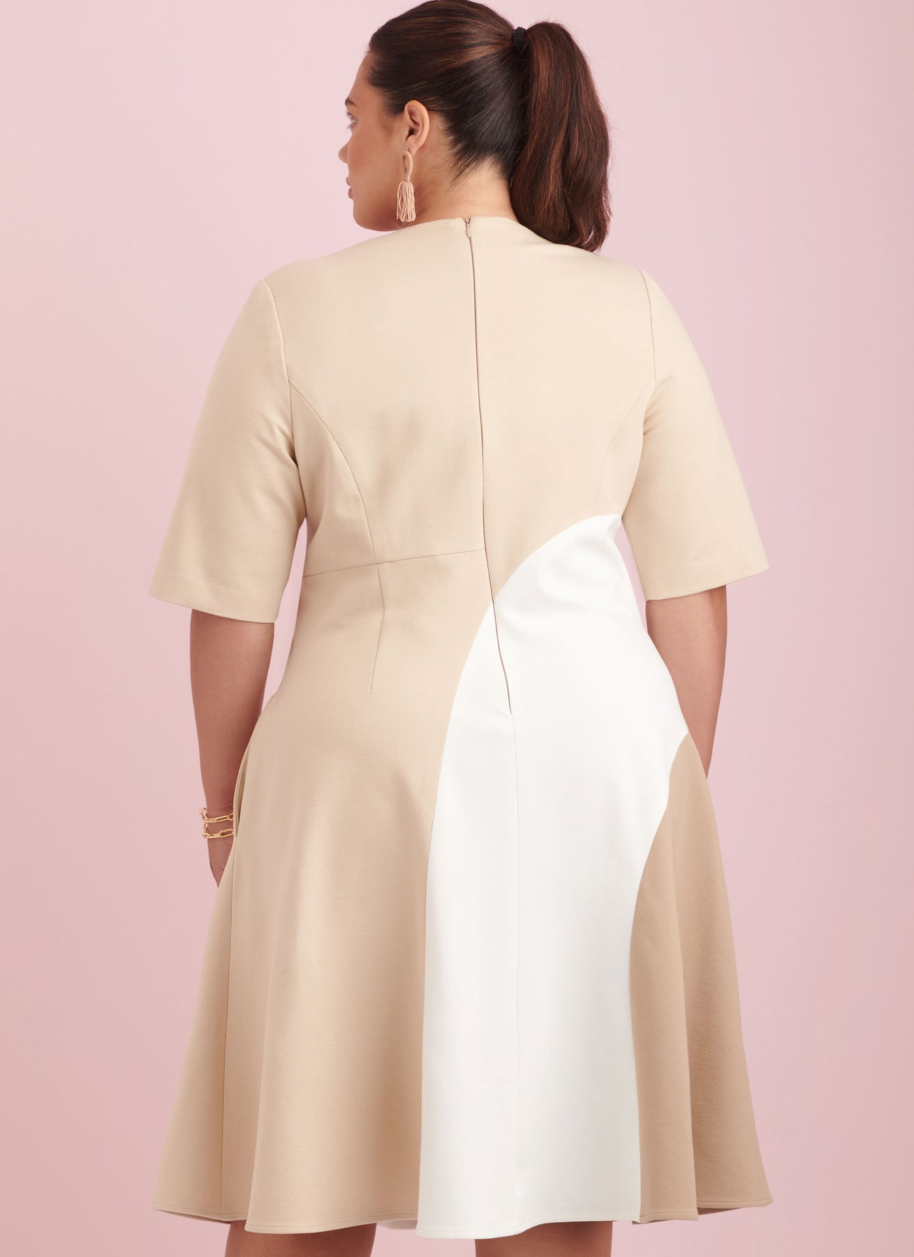 Das Schnittmuster figurbetontem Kleid mit farblich abgesetzten Stoffen verleiht dir einen eleganten Look. Mit Prinzessnähten und Abnähern im Oberteil passt es perfekt. Wähle aus drei Längen und entscheide dich für Ärmel oder nicht. Modell A hat einen Halsabschluss und alle Varianten haben seitliche Taschen. Ideal für Challis, Charmeuse, Crepe und mehr.
