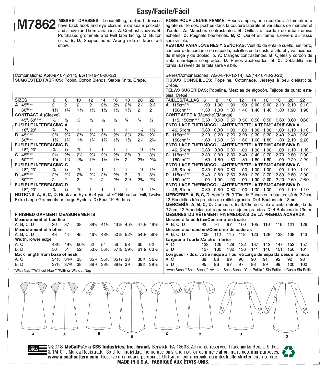 McCalls Schnittmuster M7862 Damen Kleid
