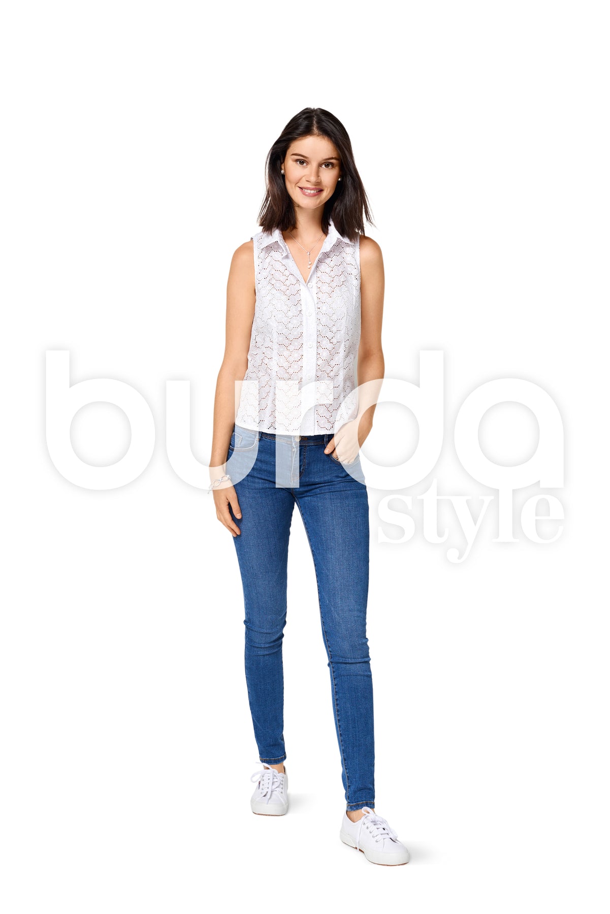 Luftige Sommerblüschen, mit Abnähern auf Figur gebracht. Wählen Sie zwischen Hemdkragen und Stehkragen, zwischen ärmellos, mit Ärmelblende und kurzen Ärmeln.