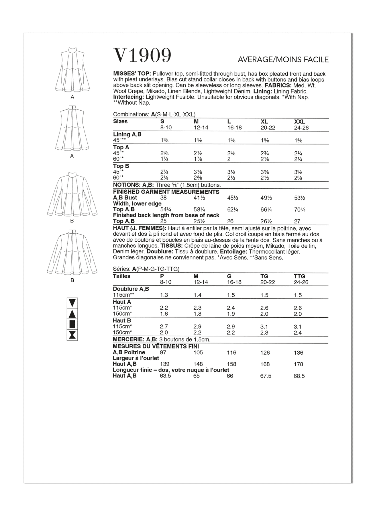 Stoffempfehlung:Med. Wt. Wollkrepp, Mikado, Leinenmischungen, leichtes Denim. Futter: Futterstoff. Einlage: Leichtes Fixiermaterial.