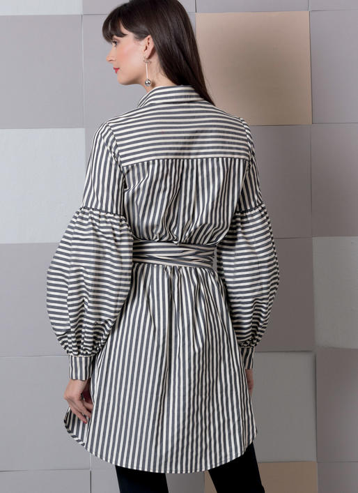 Eine Bluse mit vielen verschiedenen Varianten finden Sie in diesem Schnittmuster. 3 Varianten in kurz mit 3 verschiedenen Längen für die Ärmel und dann nochmal 3 Varianten in lang ebenso mit 3 Längen für die Ärmel. Die Bluse hat auf der Vorderseite eine Knopfleiste und einen kleinen Kragen. Zudem wird die Taille mit einem zusätzlichen Gürtel bestens betont.