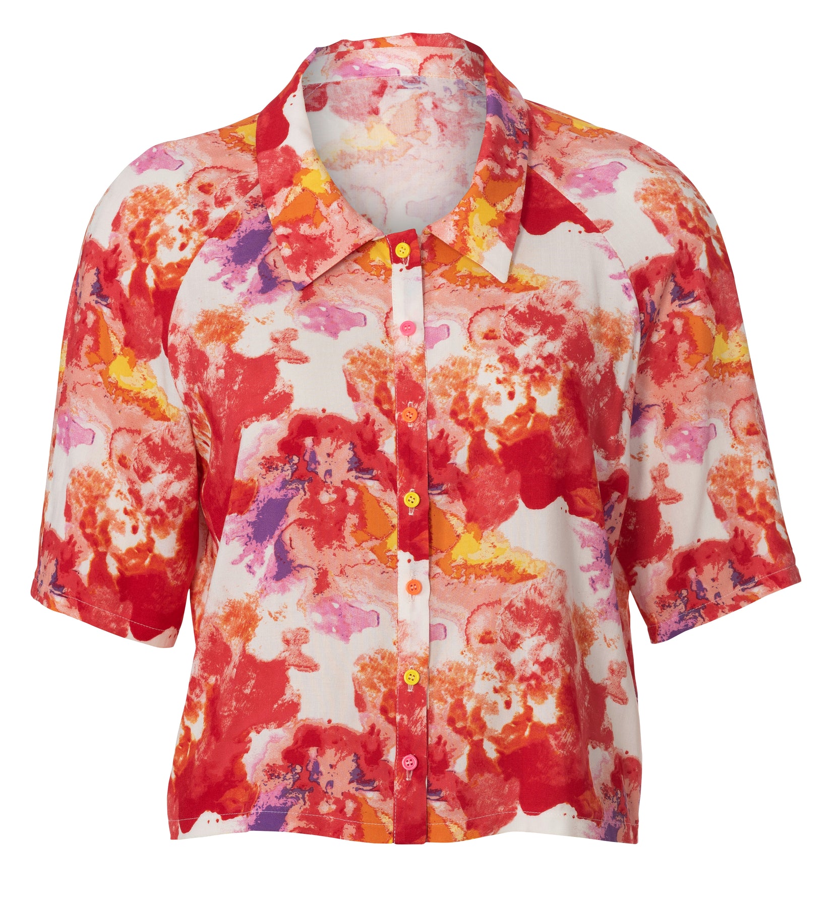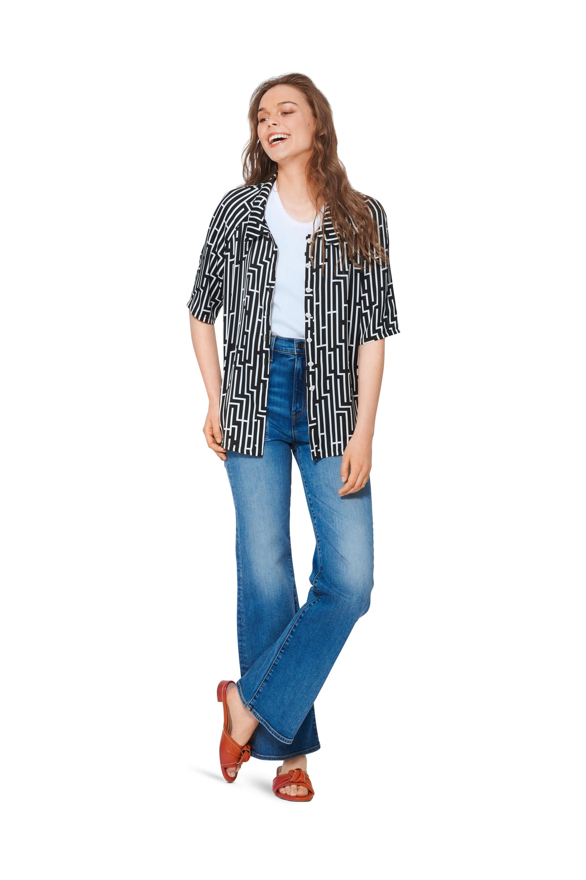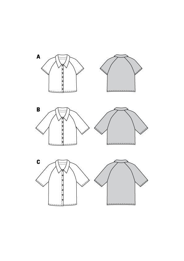 Bei dieser Bluse mit Raglanärmeln, Knopfverschluss und halsfernem Kragen können üppige Prints gut zur Geltung kommen. Aus unifarbenem Stoff gefertigt wird ein Blusenklassiker daraus, der in keinem Kleiderschrank fehlen sollte.