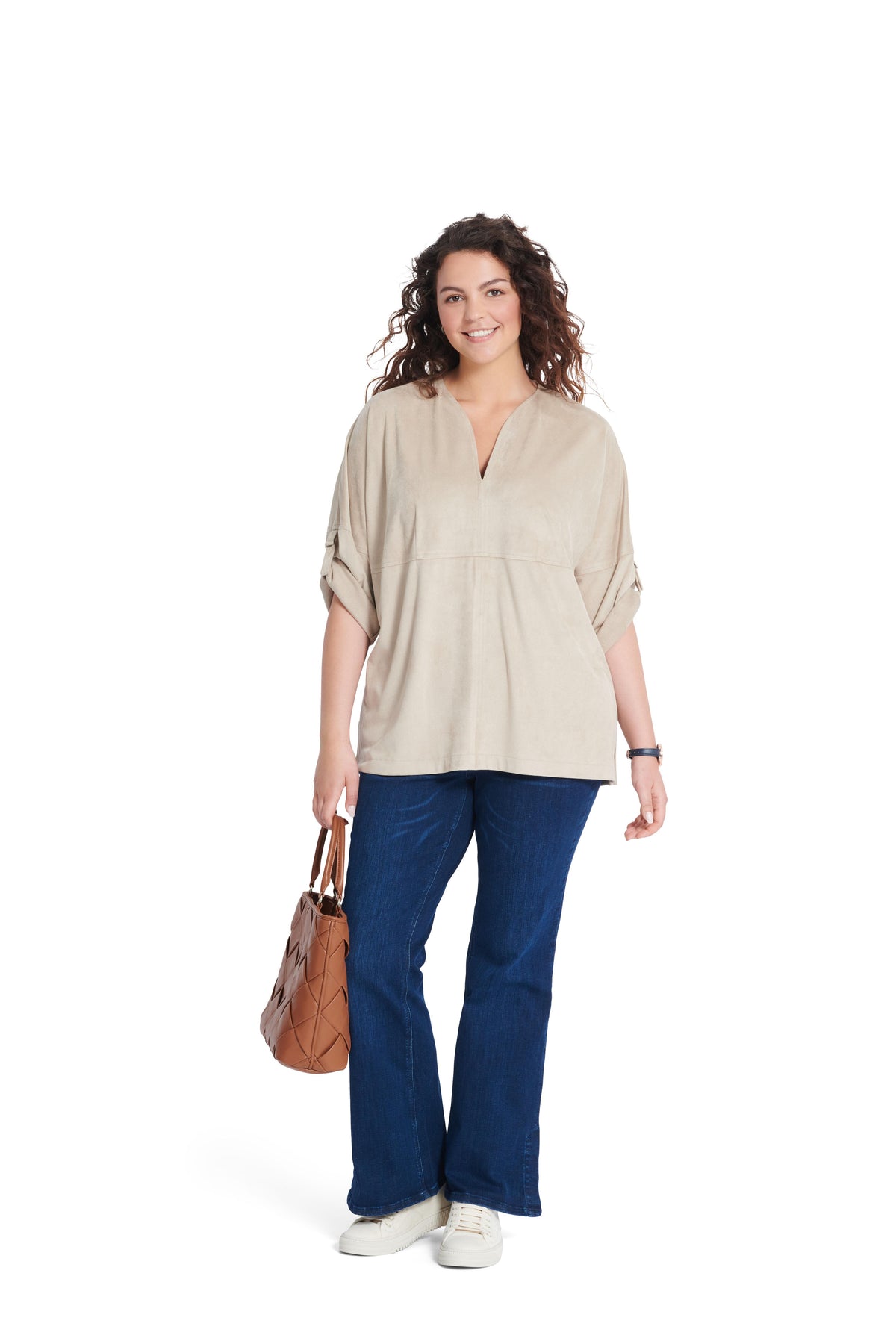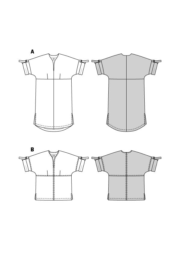 Für Freizeit und Business gleichermaßen gut zu stylen sind Kleid und Bluse mit schönem Dekolleté und Ärmeln zum Krempeln. Die locker fallende gerade Schnittführung und die seitl. Schlitze machen sie herrlich bequem. Der Schnitt eignet sich auch perfekt für die Verarbeitung von Lederimitat.