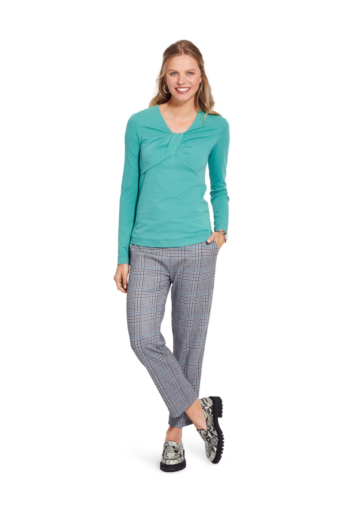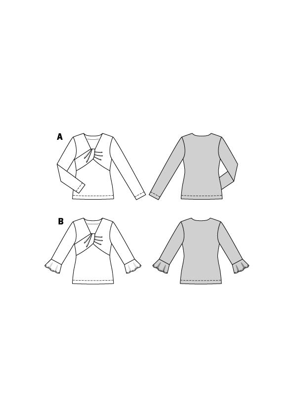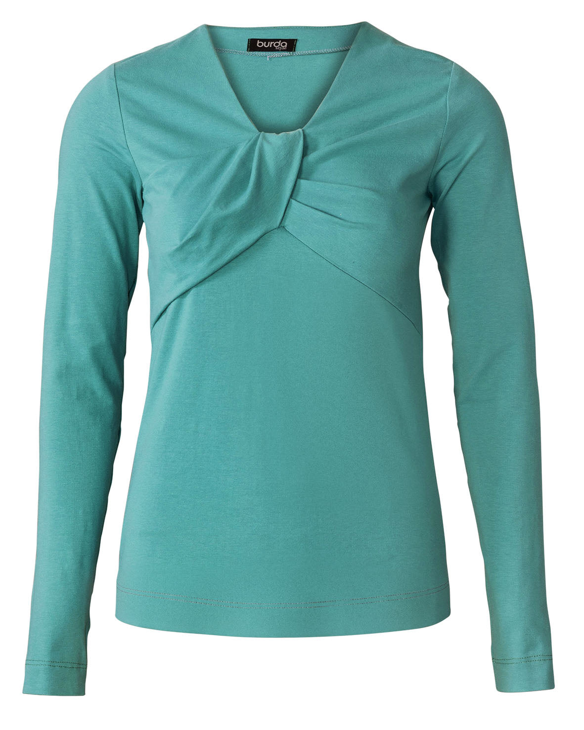 Diese Shirts sind einzigartig, der schöne Ausschnitt und die asymmetrische Schnittführung mit Verschlingung geben die besondere Note. Die Ärmel, schmal und lang oder 3/4 lang mit Volant, machen den Unterschied