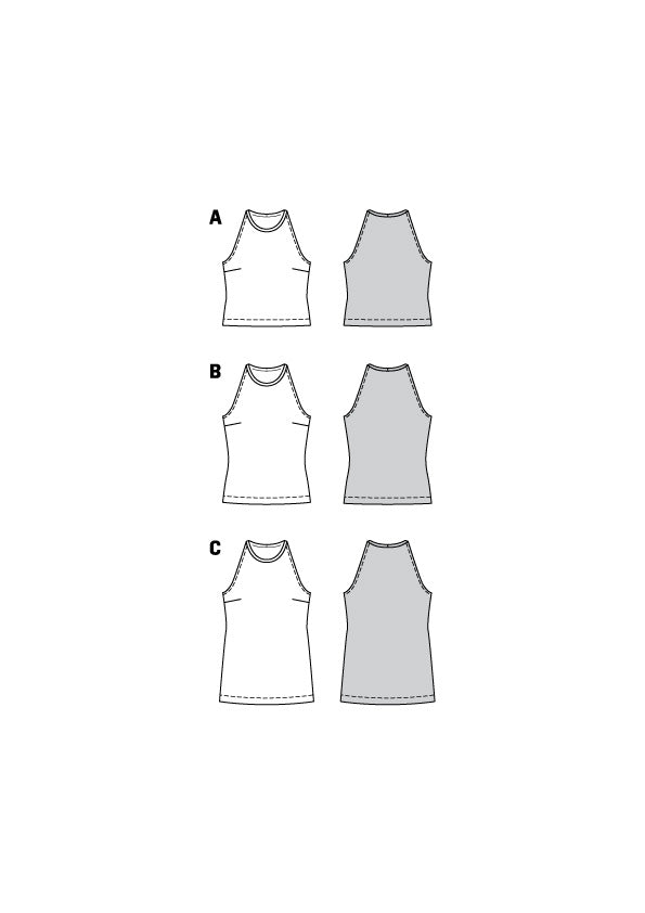 Sportliches Tanktop in 3 verschiedenen Längen das schöne Schultern perfekt in Szene setzt. Der Halsausschnitt ist eingefasst, die Armausschnittkanten werden ganz easy mit der Zwillngsnadel abgesteppt.