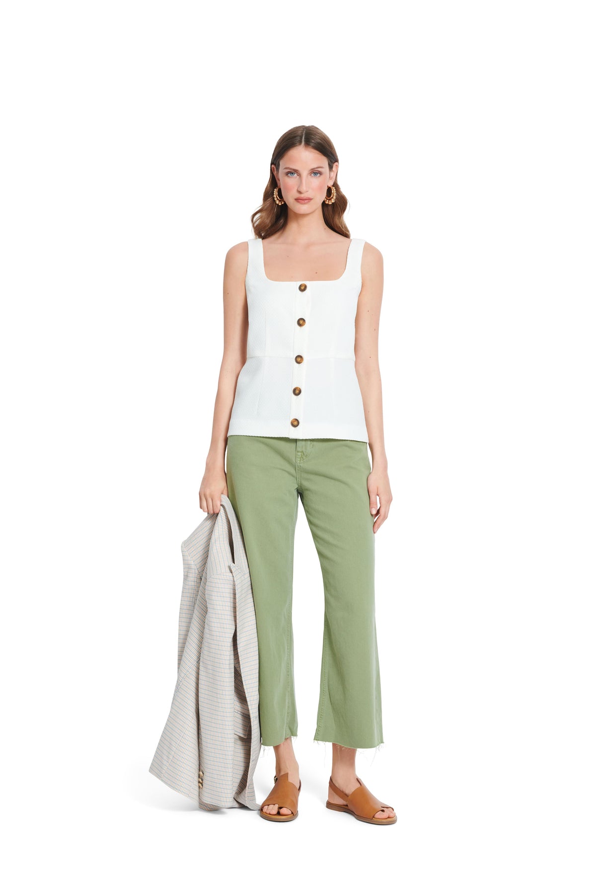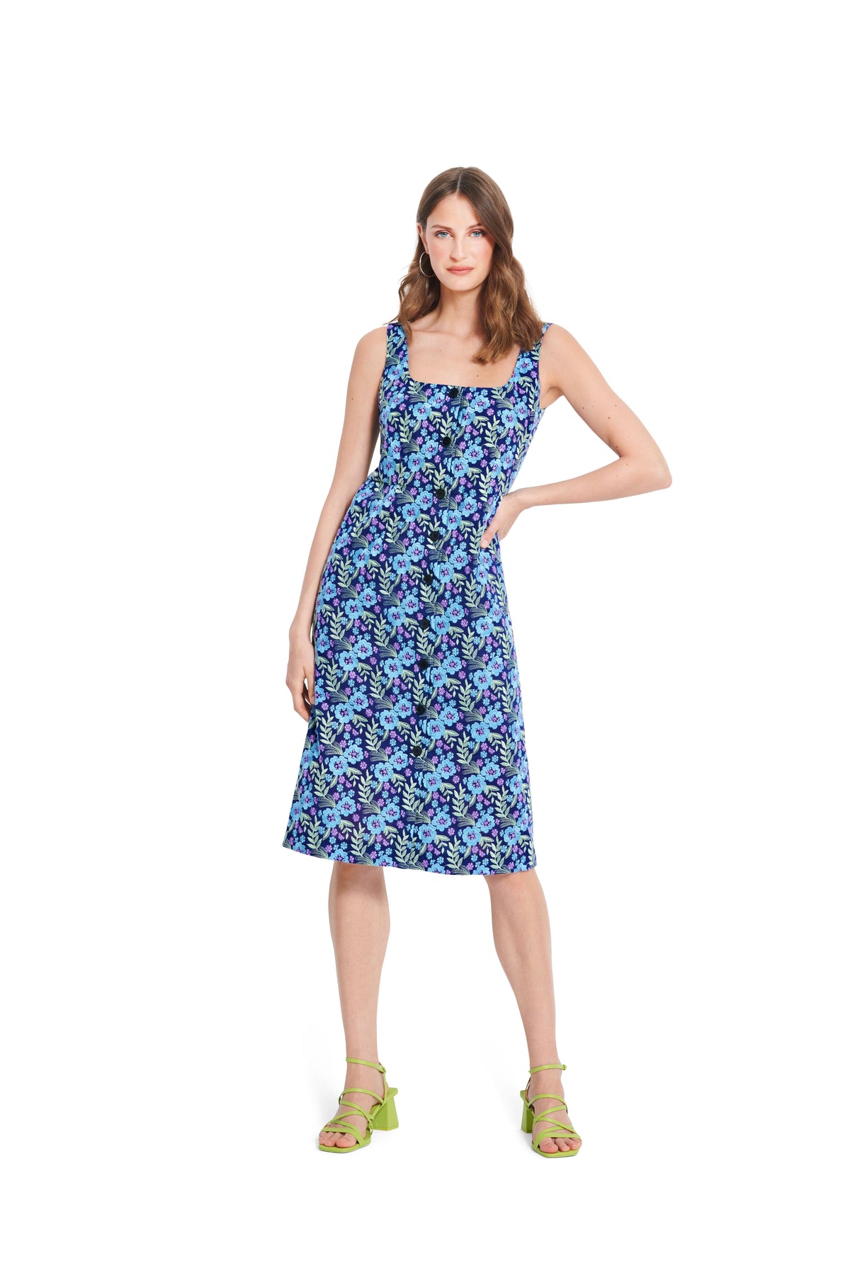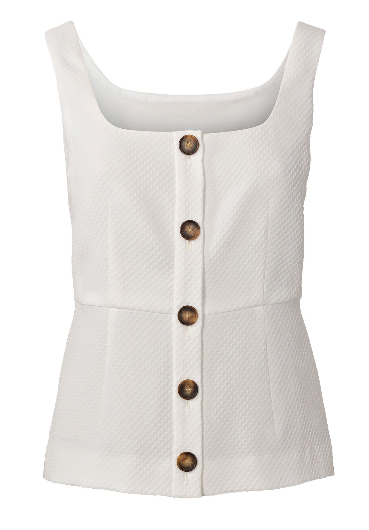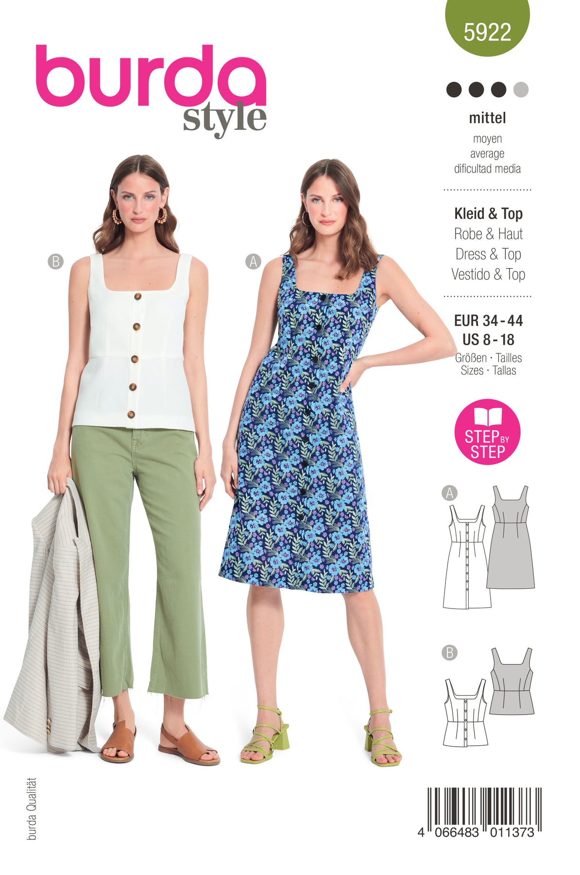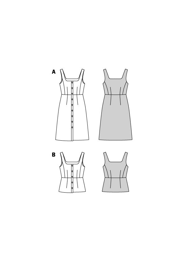 Herrlich luftig und trotzdem gut angezogen ist frau mit Trägerkleid und Top zum Aufknöpfen. Die Träger sind bei Kleid und Top breit genug darunterliegende BH-Träger zu verbergen. Das Oberteil ist gefüttert. Abnäher und Teilungsnähte sorgen für die körpernahe Silhouette.