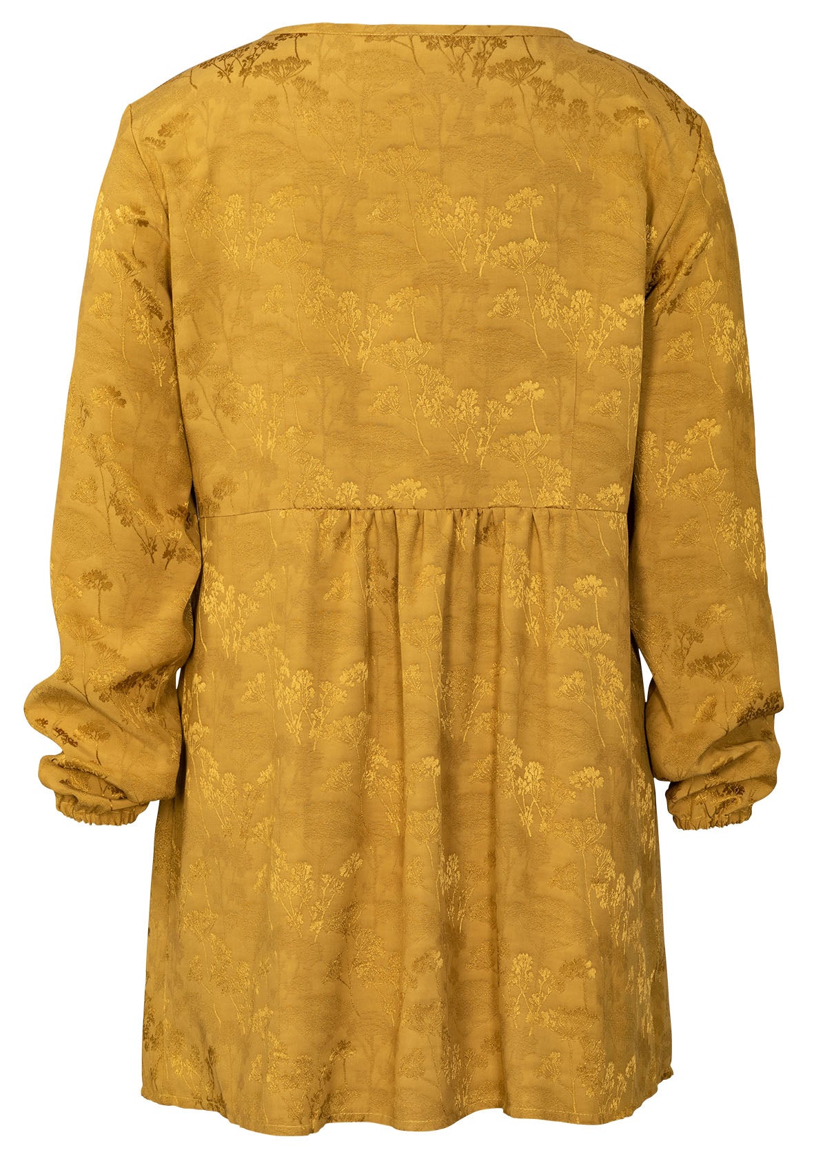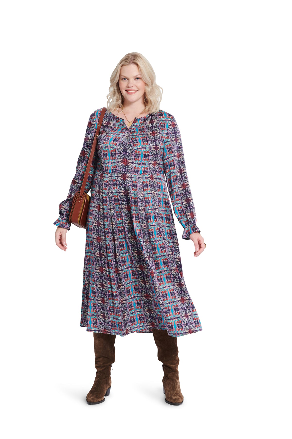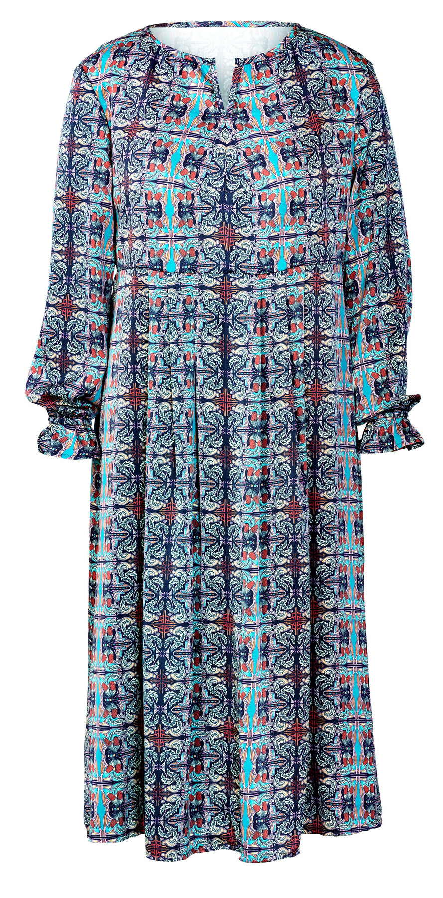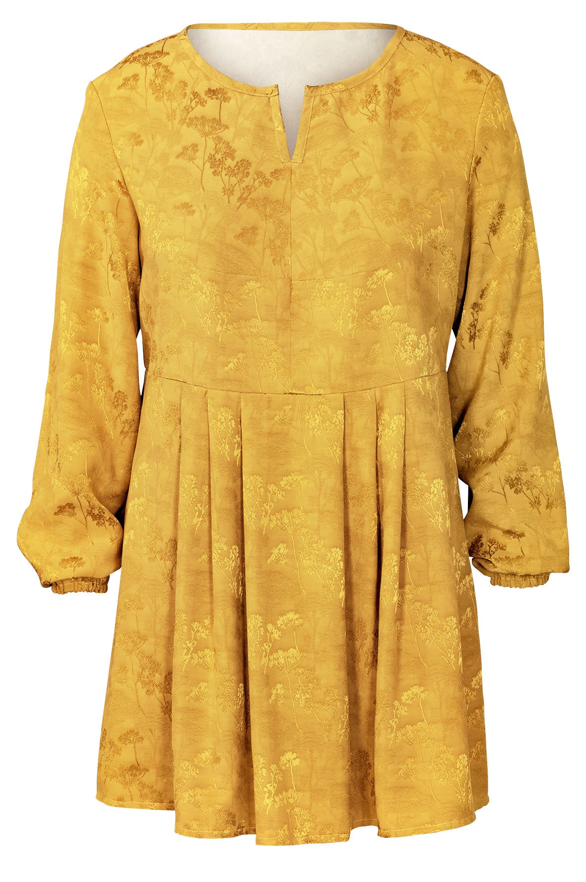 Tunika oder Kleid, beide Modelle gefallen mit rundem Ausschnitt, kleinem Schlitz und langen Ärmeln mit Gummidurchzug. Der etwas erhöht angesetzte Rock ist in kleine Fältchen gelegt, das ergibt den schönen Fall und umspielt die Taille.
