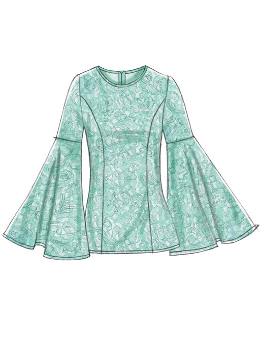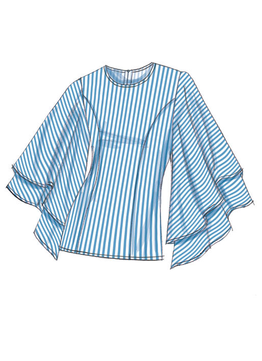 Stoffempfehlung:Spitze, Crêpe de Chine, Baumwoll-Shirting, Viskose. Ungeeignet für offensichtliche Diagonalen. *Mit Flor. **Ohne Flor.