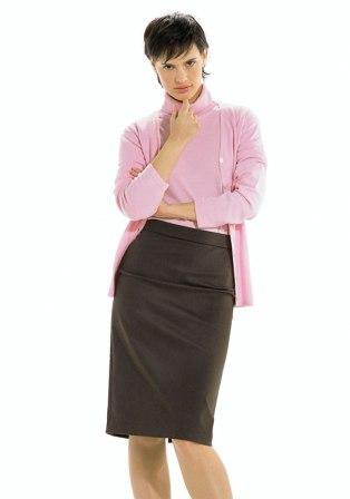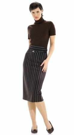 Bleistiftrock in zwei Längen. Rock A mit vorne ansteigendem Bund und Gürtelschlaufen. Beide Röcke mit Gehschlitz.