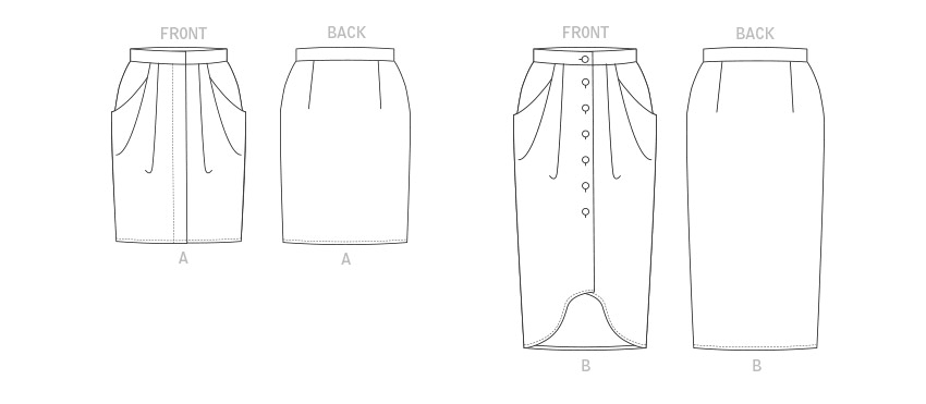 Der Vogue Schnittmuster V1849 Damen Rock überzeugt durch sein vielseitiges Design und hohen Tragekomfort. Der Rock sitzt locker in der Hüfte und verfügt über eine praktische Knopfleiste sowie seitliche Vordertaschen, die zusätzlichen Stauraum bieten. Die vorderen Falten verleihen dem Modell eine elegante Note, während verschiedene Längen zur Auswahl stehen, um jedem Stil gerecht zu werden. Ansicht A besticht durch einen Haken und Riegel am Bund sowie einen verdeckten Knopfverschluss, der für einen sauberen Look sorgt. Ansicht B setzt auf selbst verdeckte Knöpfe, die dem Rock eine moderne und schlichte Optik verleihen. Ideal für modebewusste Frauen, die Komfort und Stil verbinden möchten.