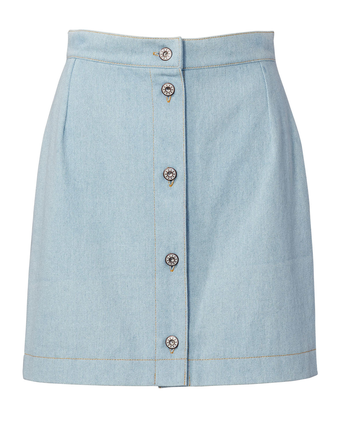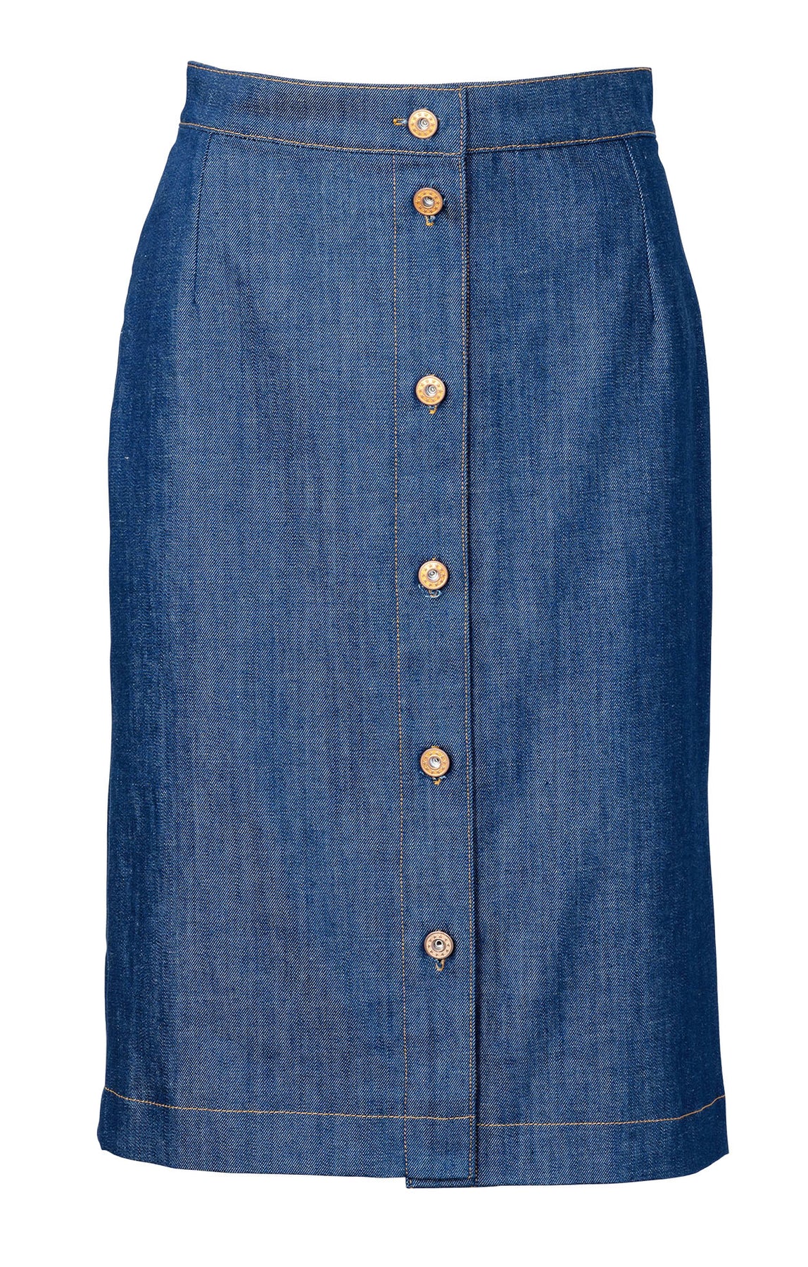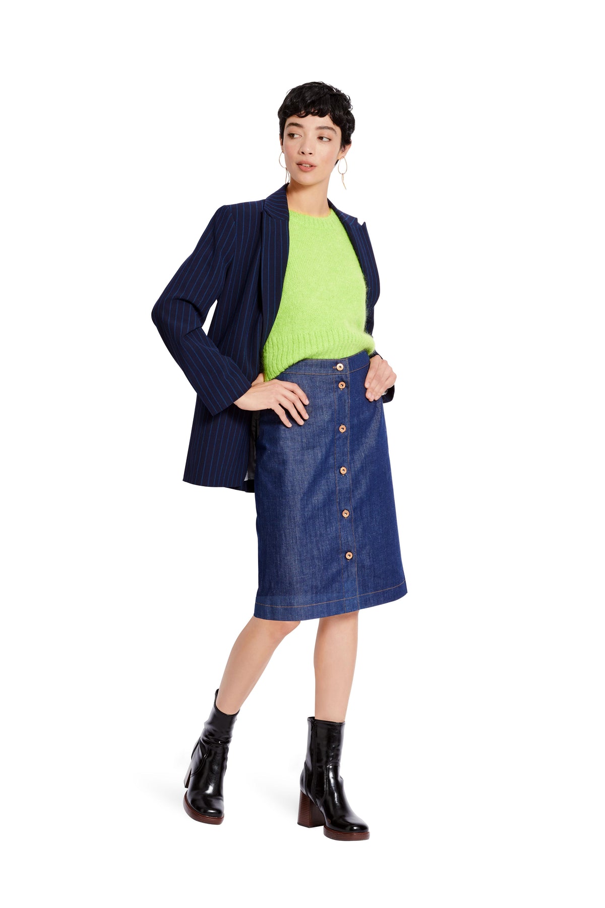 Der durchgeknöpfte Rock ist möglicherweise das Lieblingsteil der Saison! Mit rückwärtigen Passen, aufgesetzten Taschen, in drei Längen, ist er ein Allroundtalent und kann immer wieder anders gestylt werden.
