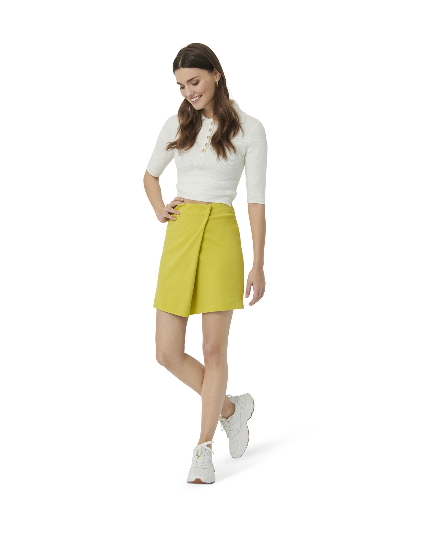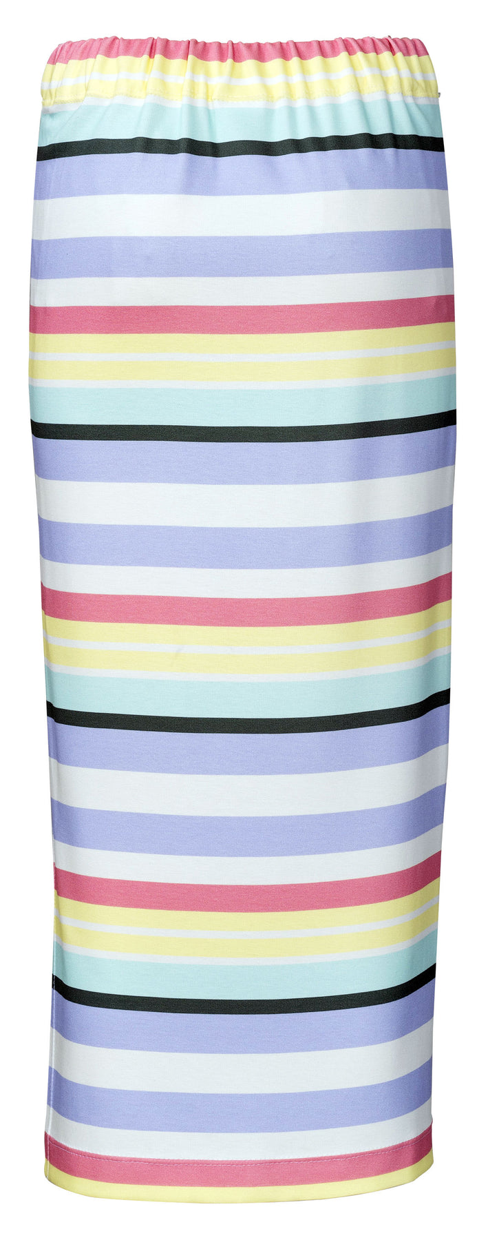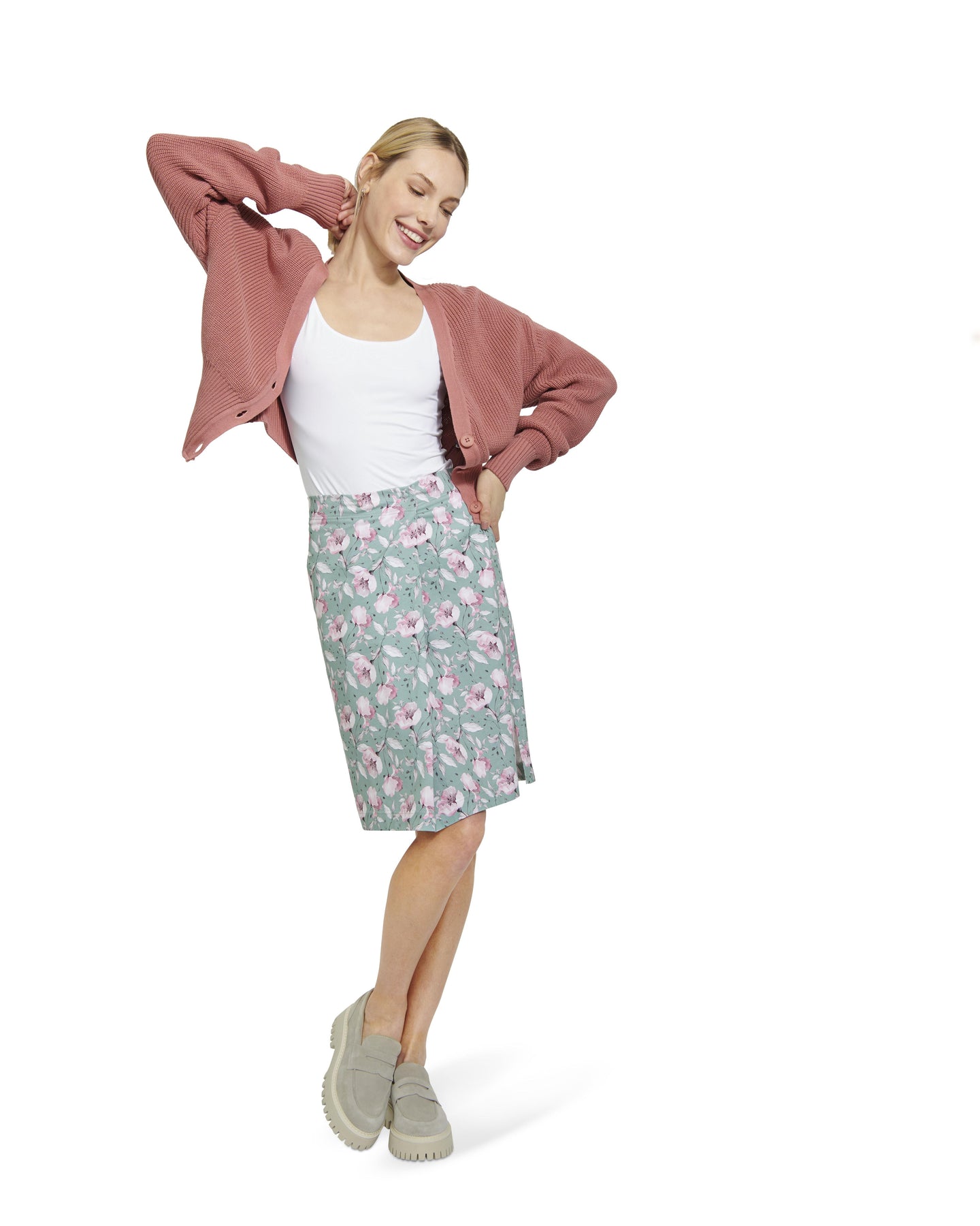 Gerader Rock mit seitlichem Schlitz, tiefer Falte vorne und bequemem Gummizug im Rückenteil. Der Verschluss ist raffiniert und super easy zugleich. In jeder Länge ein prima Basicpiece und auch idealer Urlaubsbegleiter