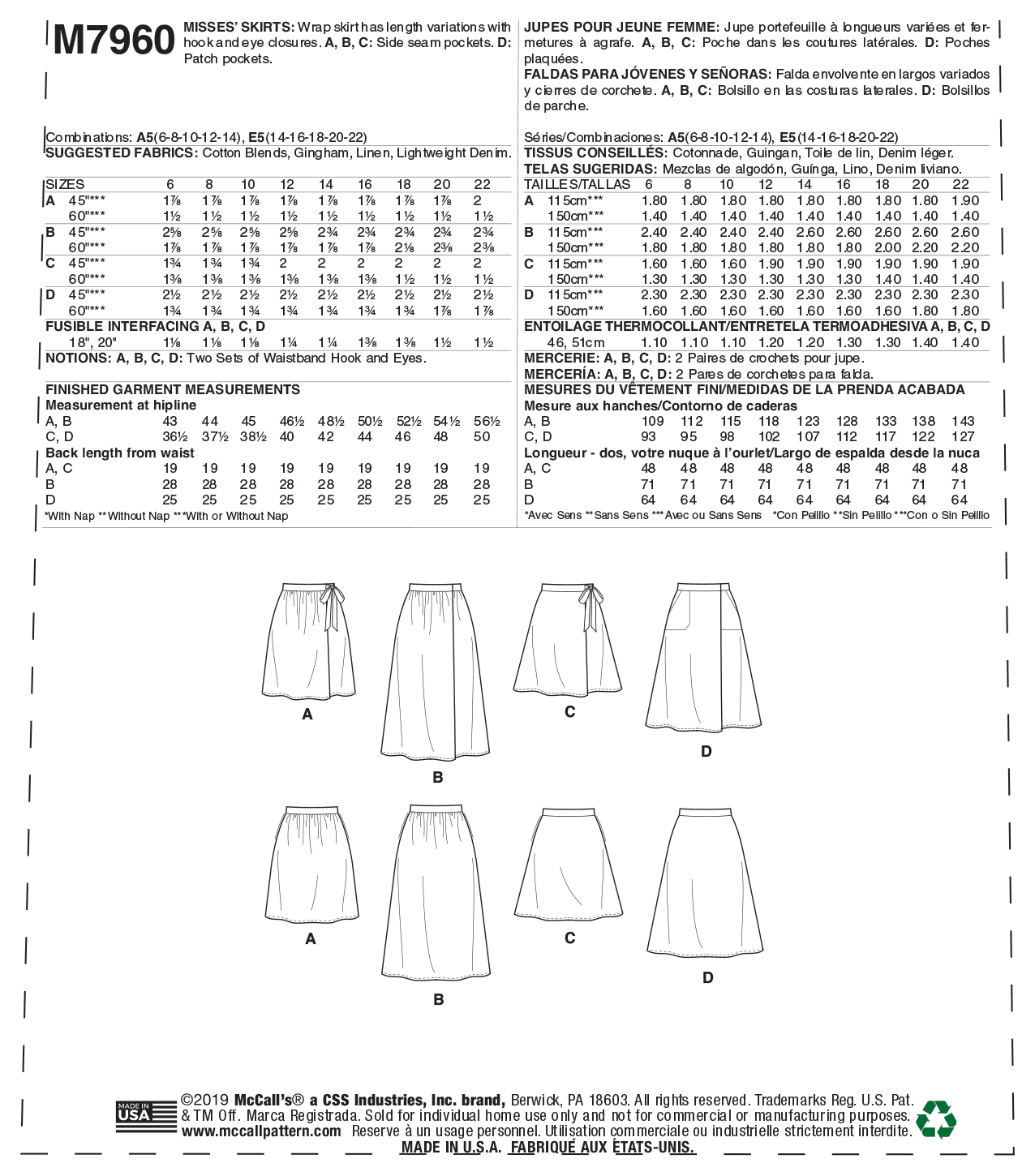 McCalls Schnittmuster M7960 Damen Rock